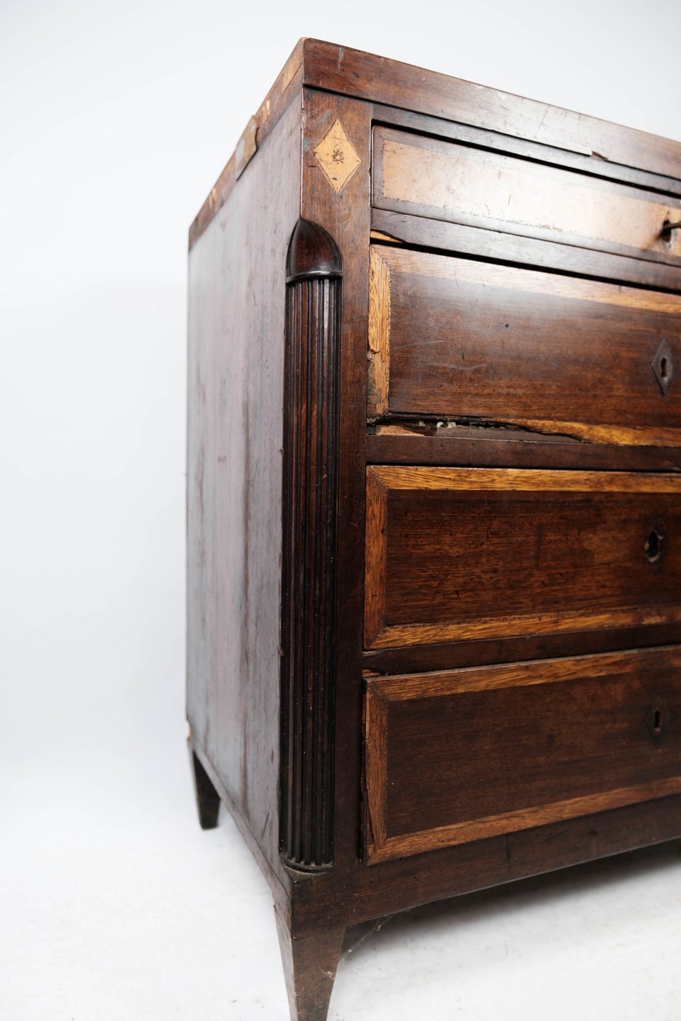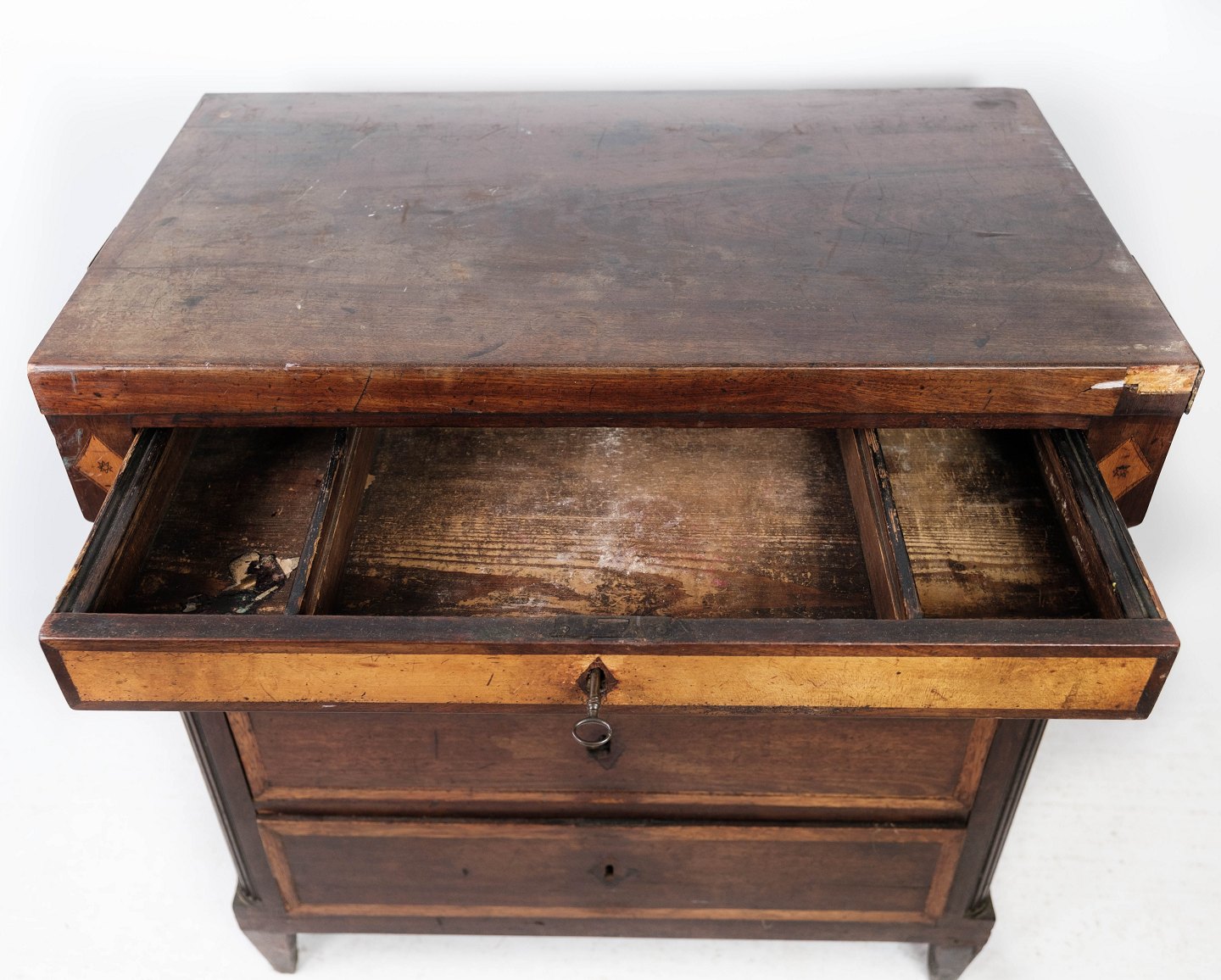 Louis Seize kommode af mahogni med intarsia. Kommoden er i flot antik stand.