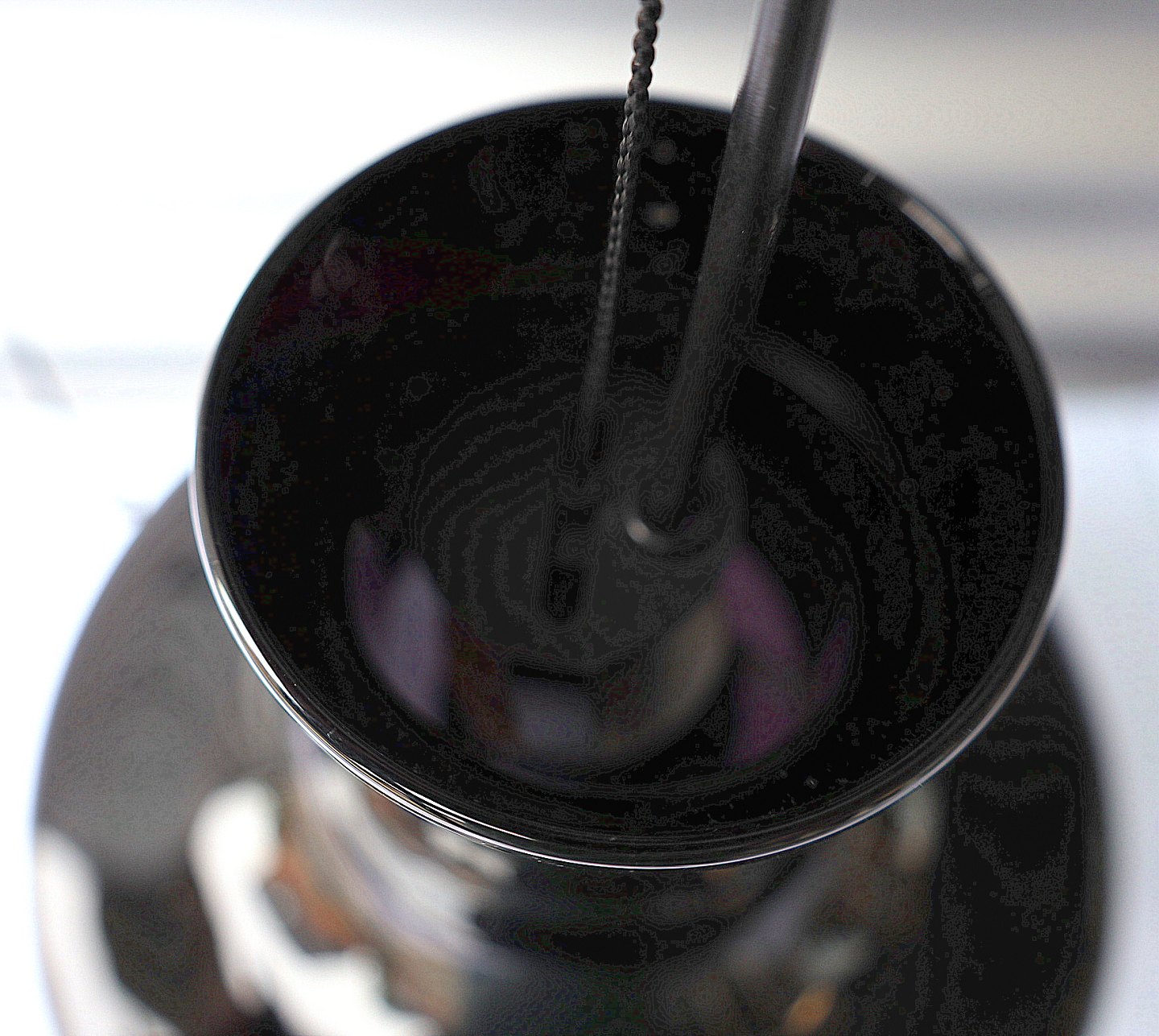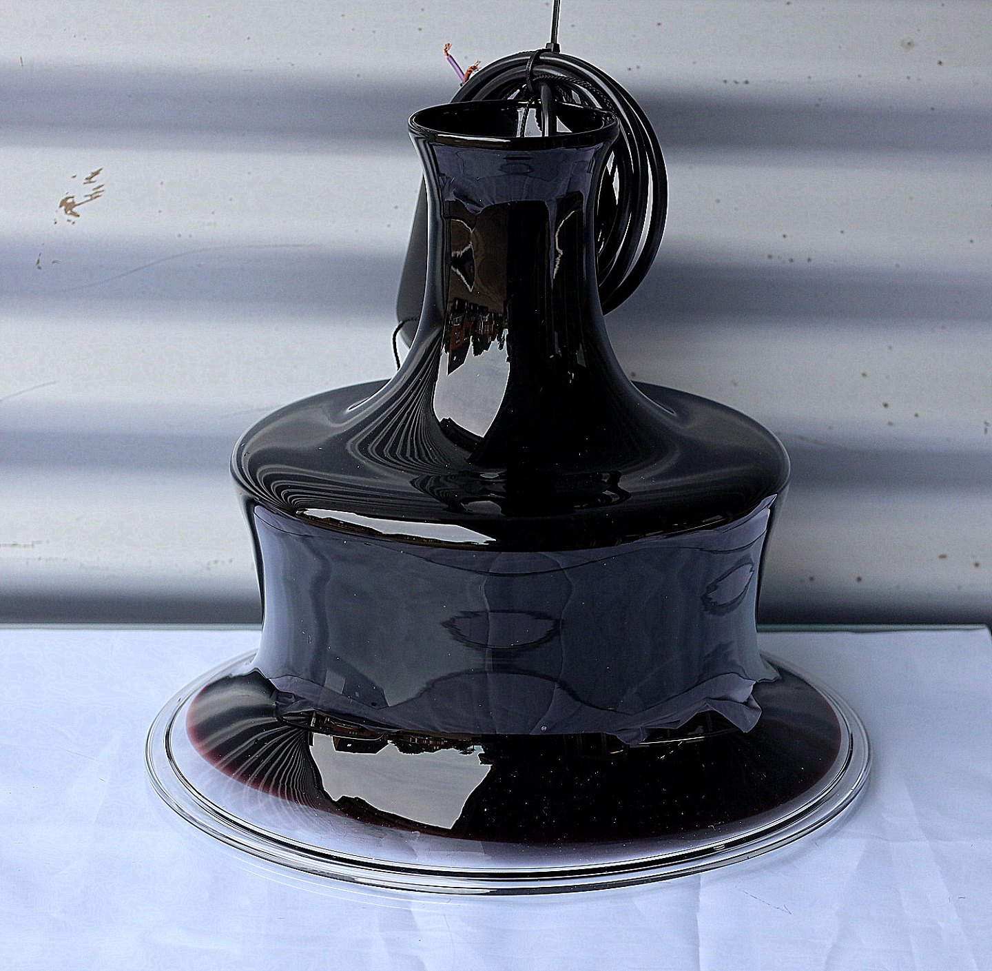 Holmegaard Glasværk. Sonate Pendel, pendlen kommer med hejs.. Glasskærmen er udført i farven aubergine, med klart overfang.