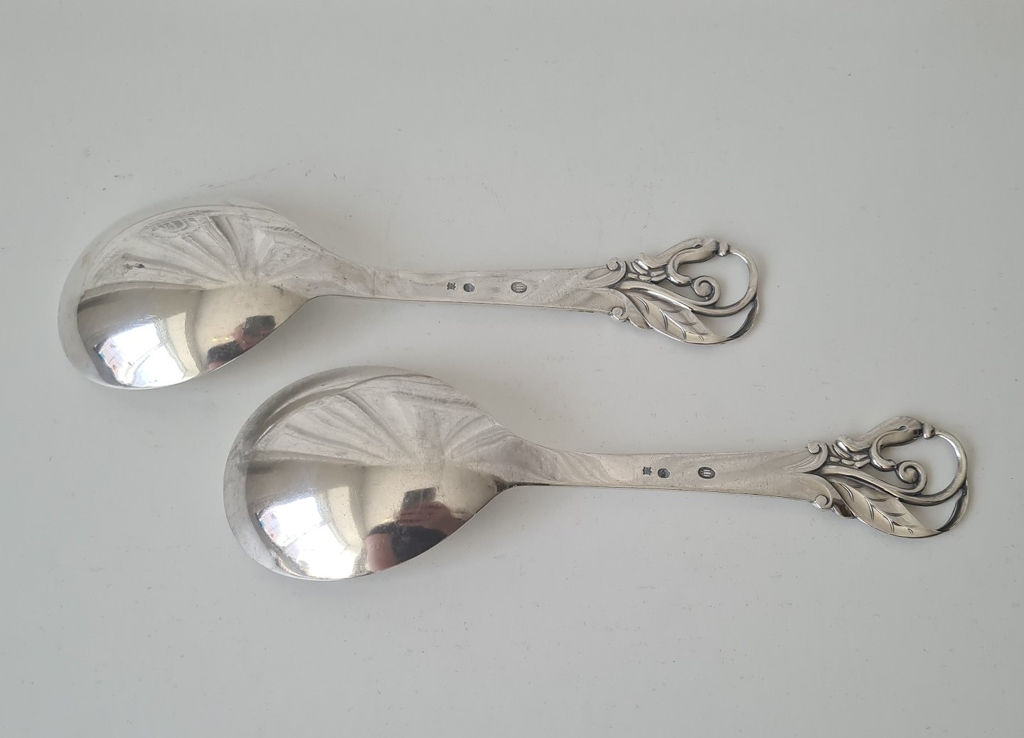 Serveringsske i sølv med ornemental dekoration 19,8 cm.