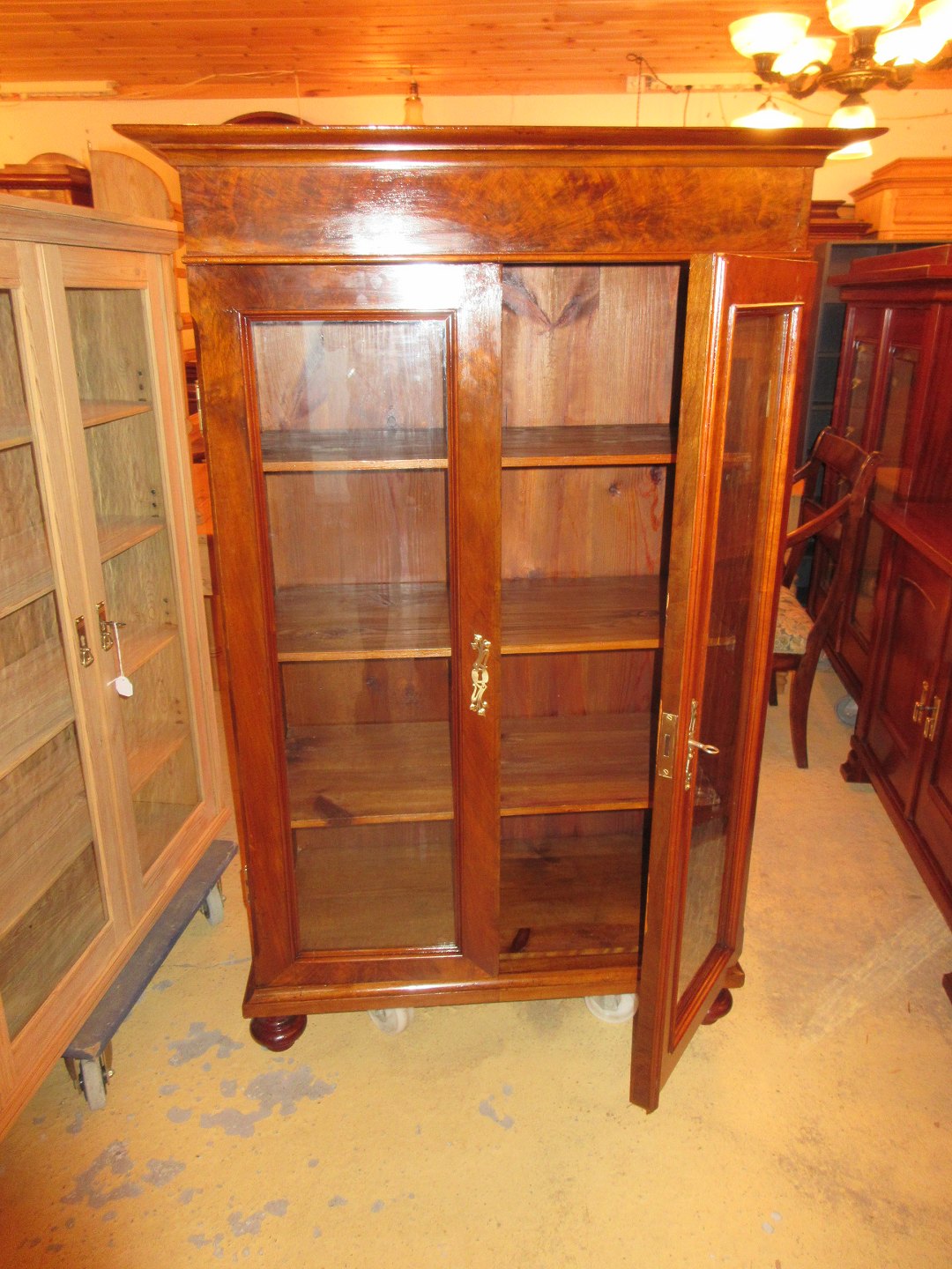 Mahogni Glasskab / Vitrineskab med 2 glaslåger og hylder Restaureret og Håndpoleret i meget fin stand H 138, D 45, B 91,cm 590/597-P