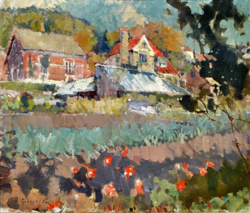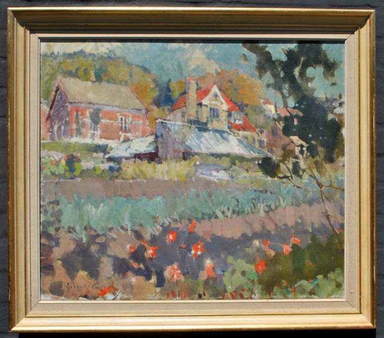Godycki-Cwirko, Dmitri (1908 - 1988) Danmark/Letland: Huse med haver. Olie på lærred. Signeret. 60 x 70 cm.