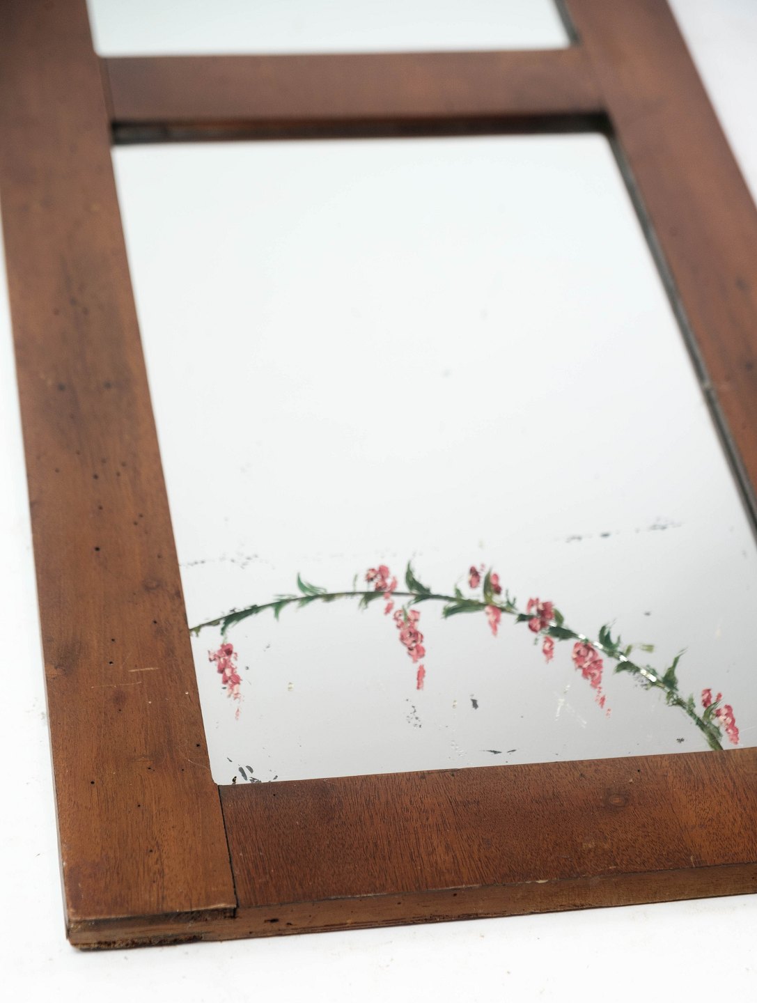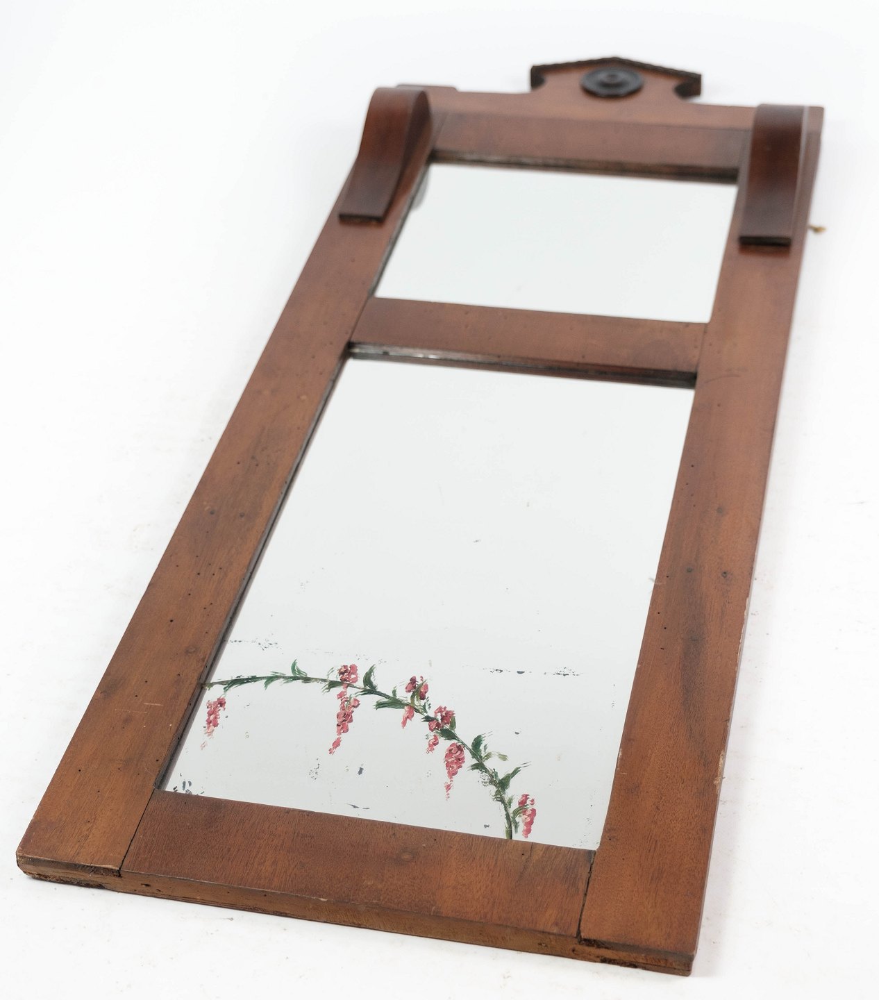 Spejl af mahogni dekoreret med blomster, i flot antik stand fra 1860erne.