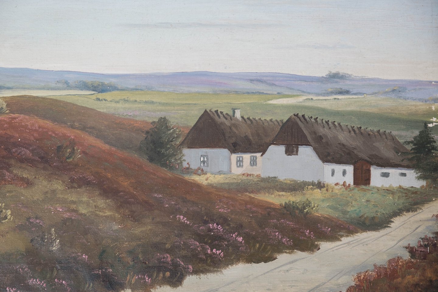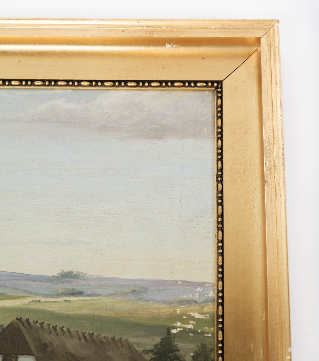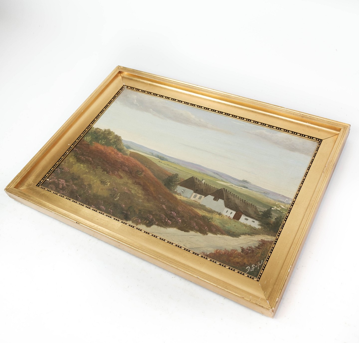 Maleri på lærred med land motiv og forgyldt ramme, med ukendt signatur fra 1920erne.