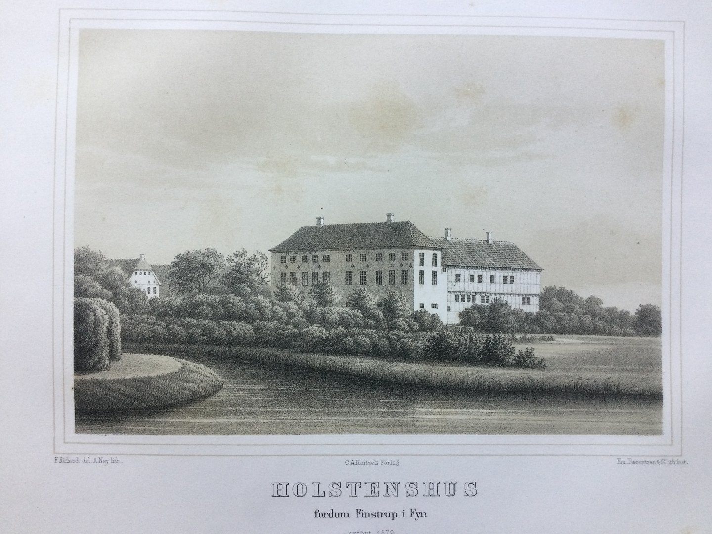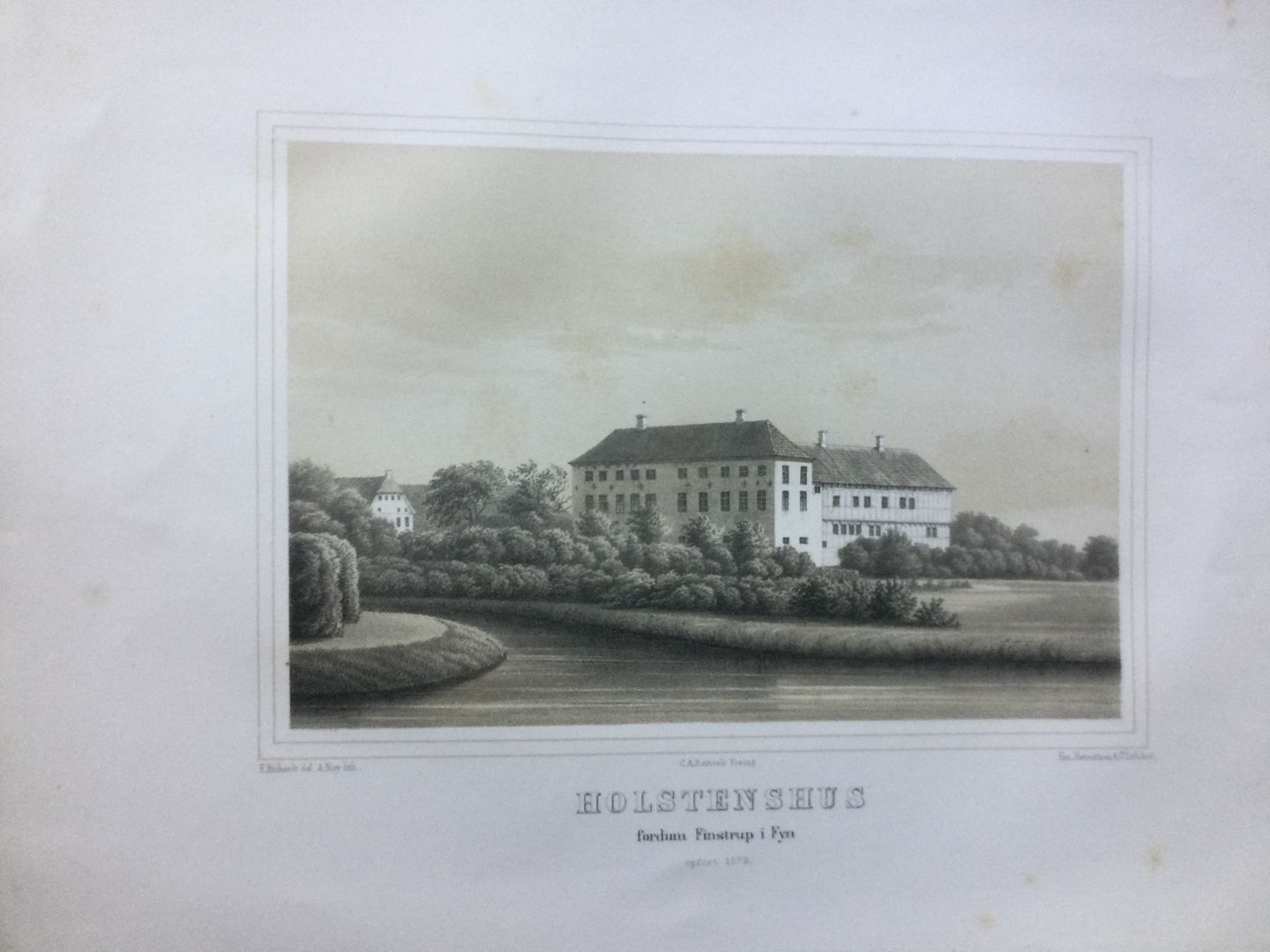 Litografi af Holstenshuus på midtfyn ca. 1850.