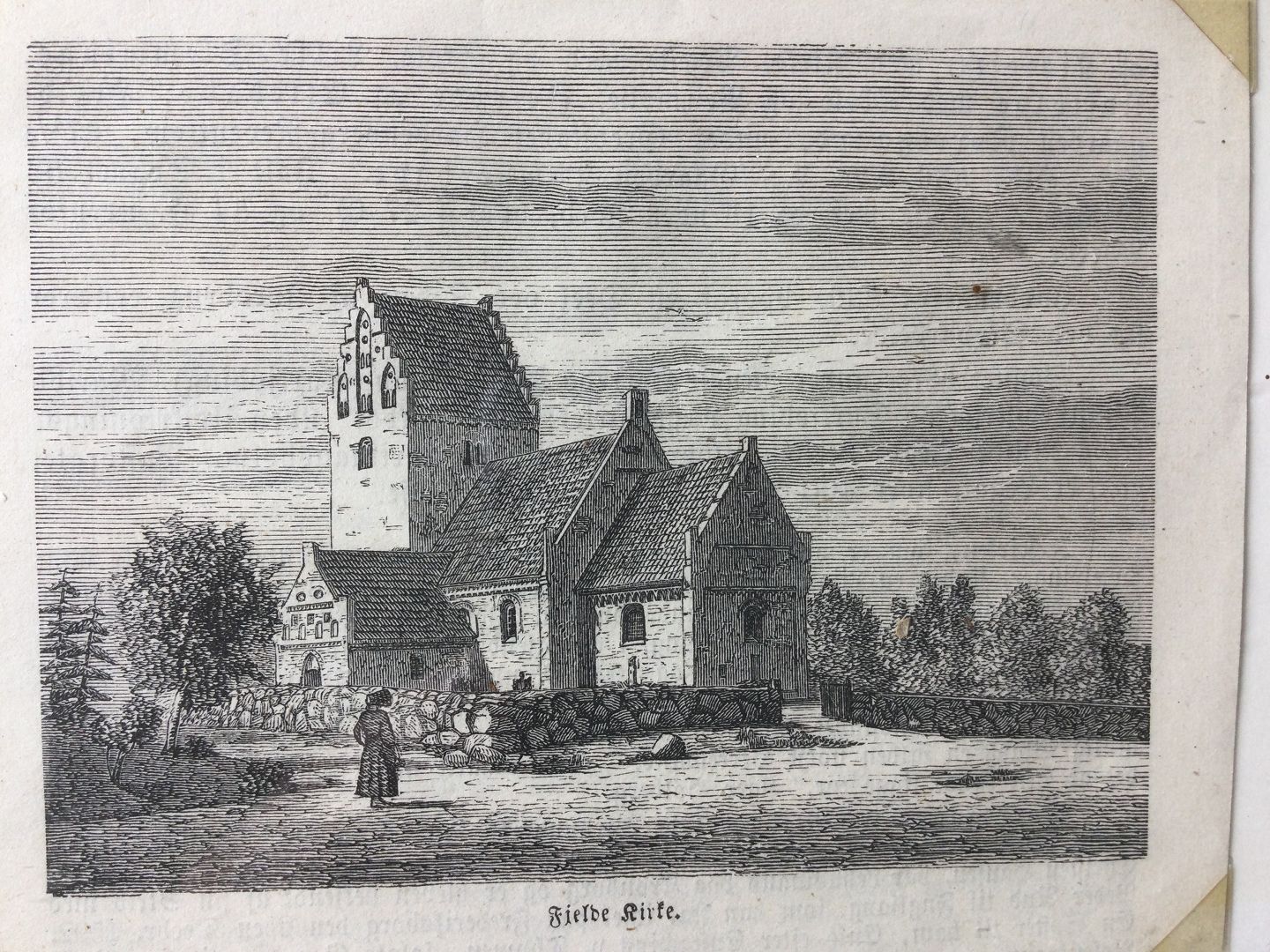 Xylografi af Fjelde Kirke på Lolland 1859.