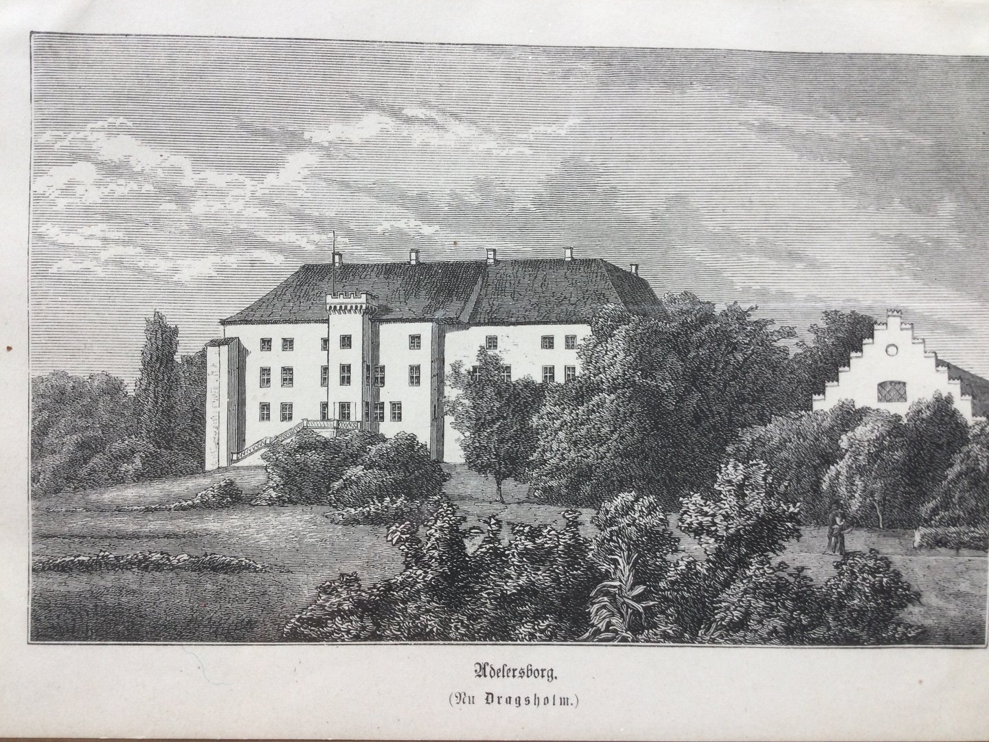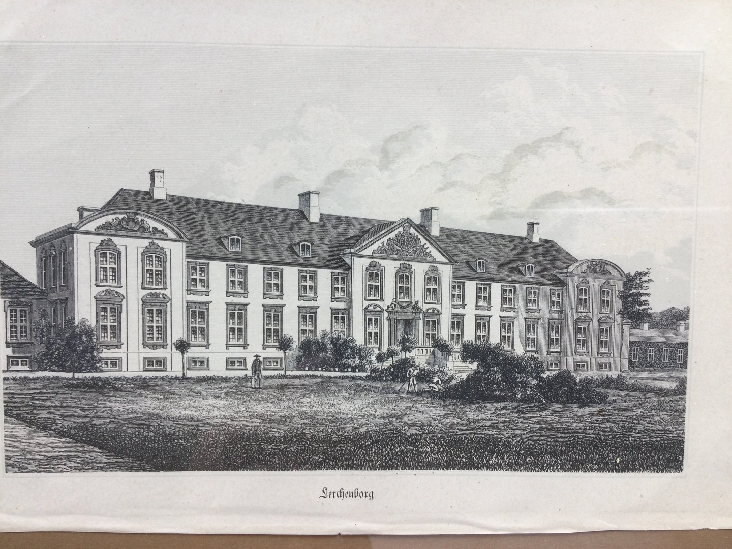 2 litografier i samme ramme - Dragsholm Slot og Lerchenborg Slot.