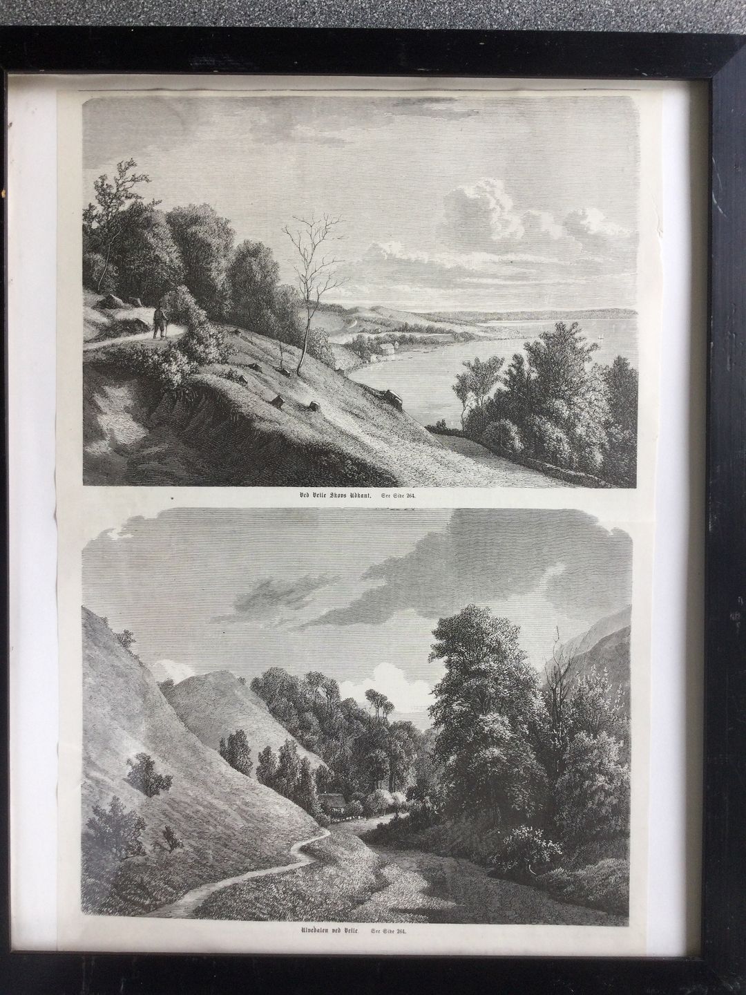 2 xylografier i samme ramme - motiver fra Vejle kanten.