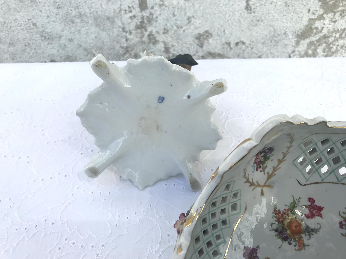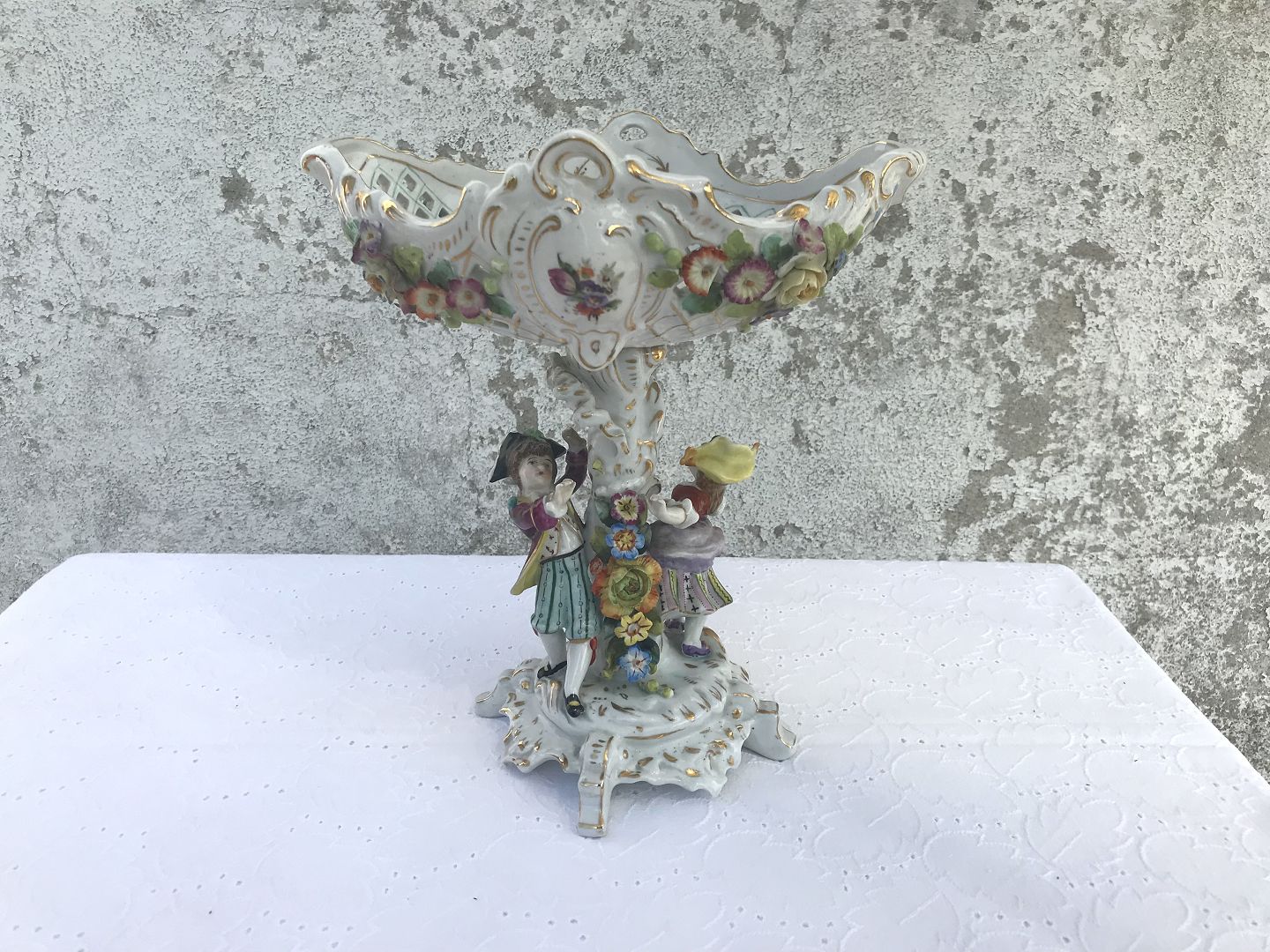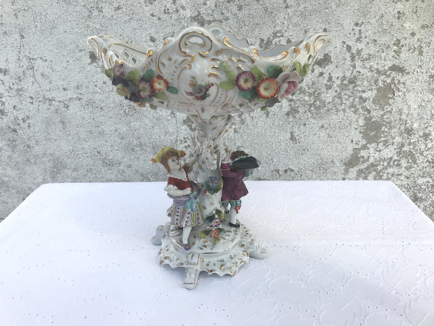 Royal Vienna marked with shield / Beehive, Old porcelain insert with various figures, The upper part lies loosely on the lower part. 25cm high, 23cm wide * Appears with small rejections on flowers (the largest is on the back of the female figure's hat) *