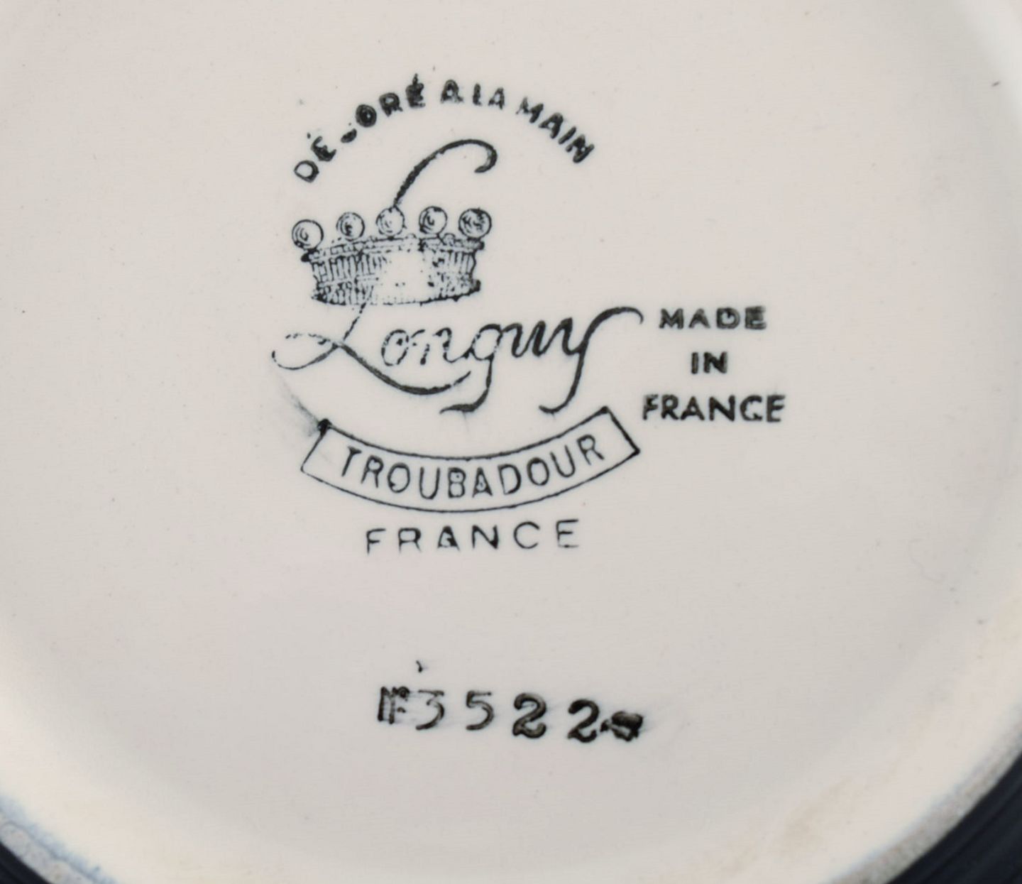 Longwy, Frankrig. Troubadour fad i glaseret keramik med håndmalede blomster. Midt 1900-tallet.