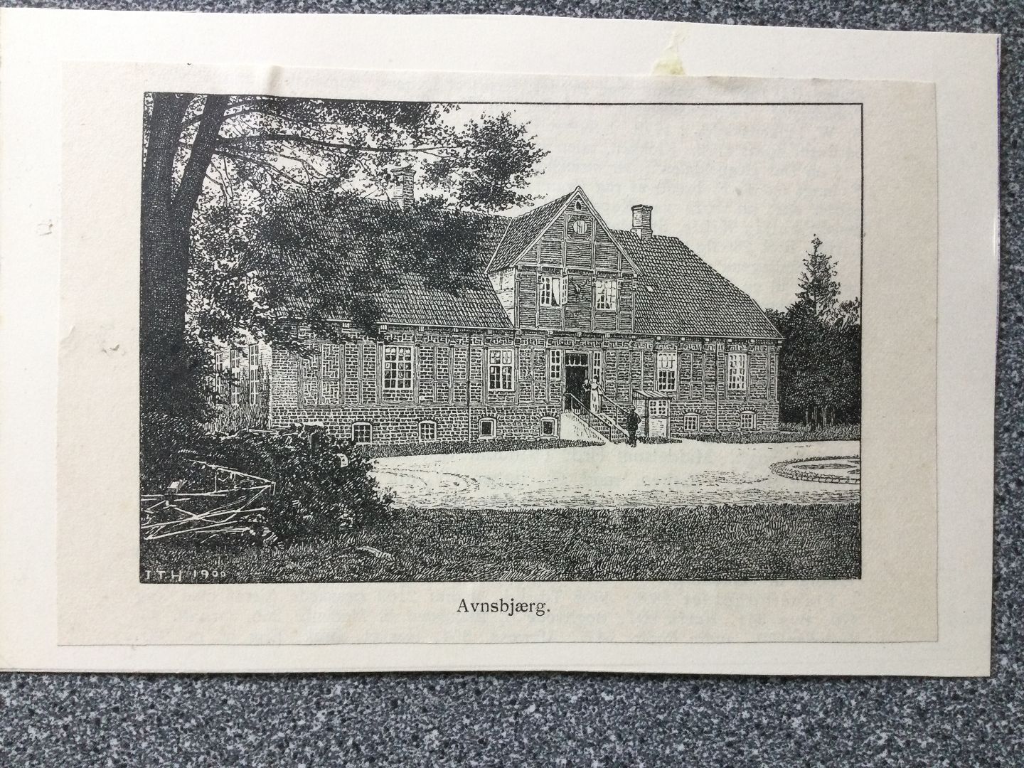 Xylografi af J.T. Hansen - Herregården Aunsbjerg ved Silkeborg 1900.