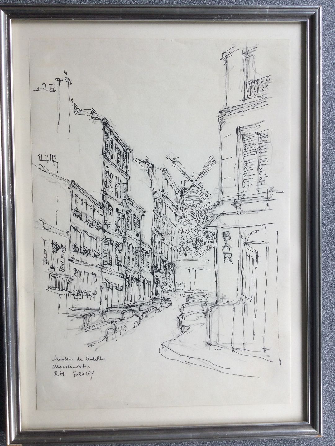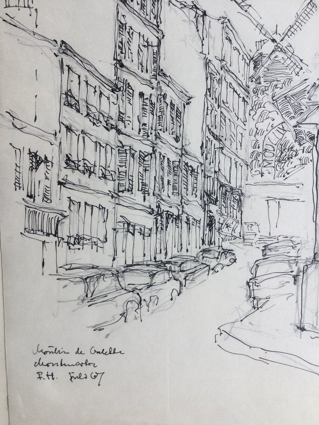 Tegning af Franziska Hamann 1967 - Parti fra Montmartre Paris.
