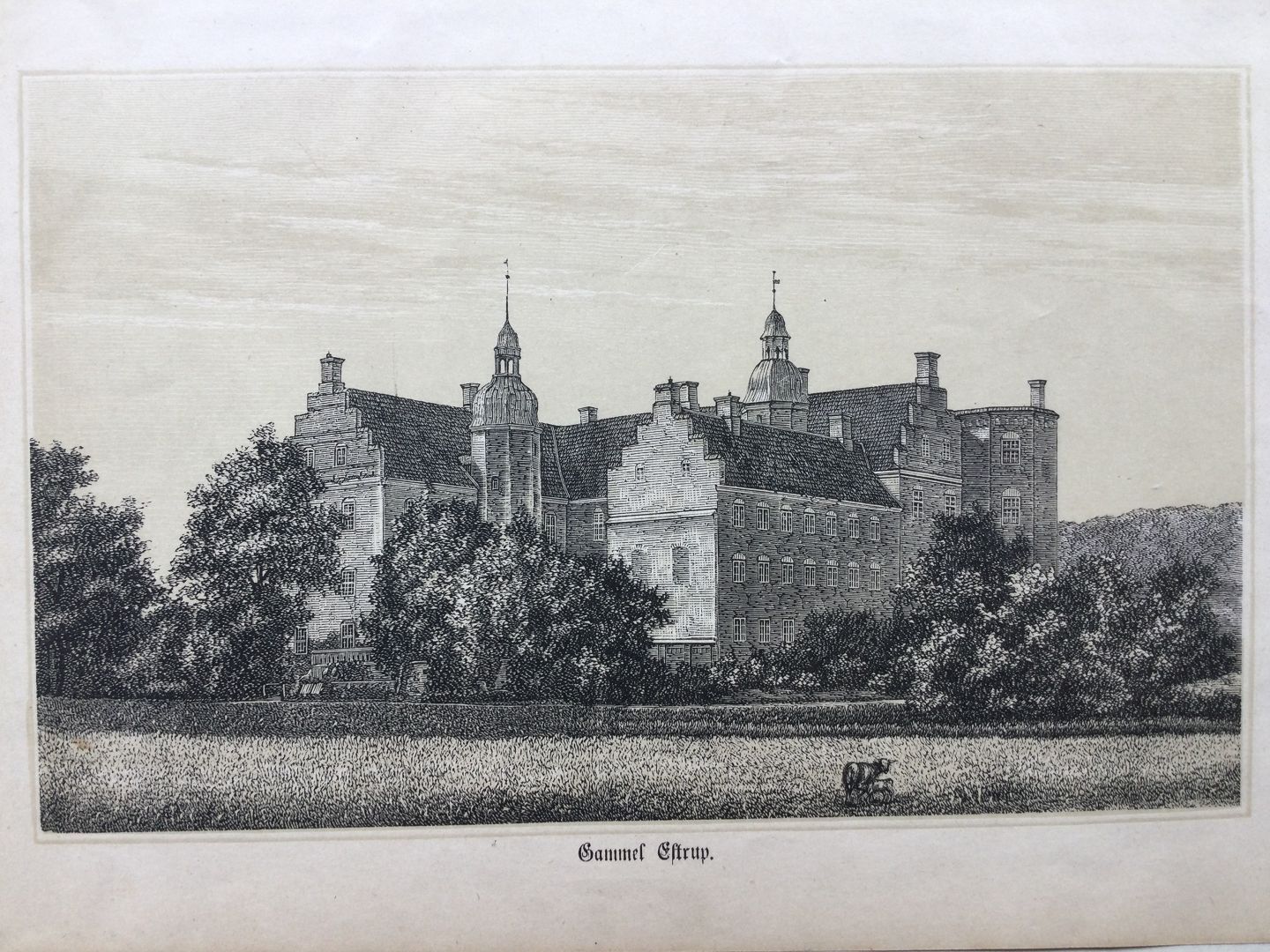 Litografi af Gammel Estrup på Djursland ca 1860.