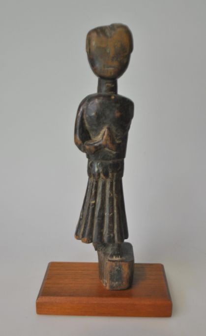 Antik nepalesisk træfigur af bedende mand, 18./19. årh. H.: 19 cm. Ny nyere fod af mahogni.