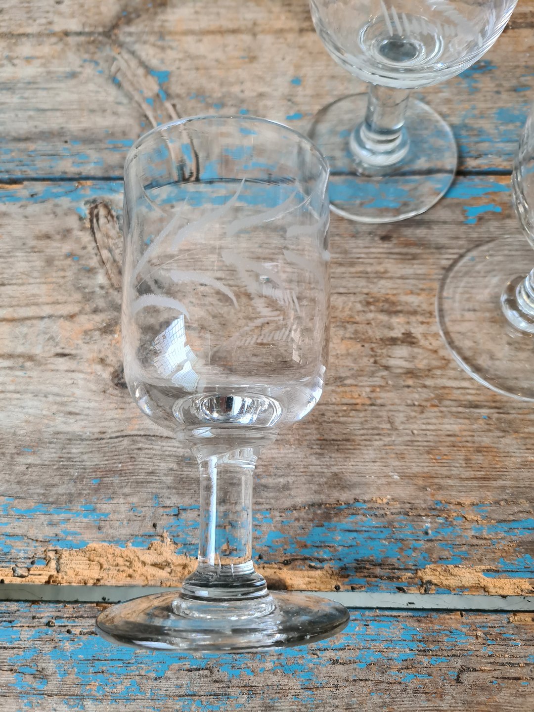 Sæt på 6 franske vinglas med fine slibninger i form af blade