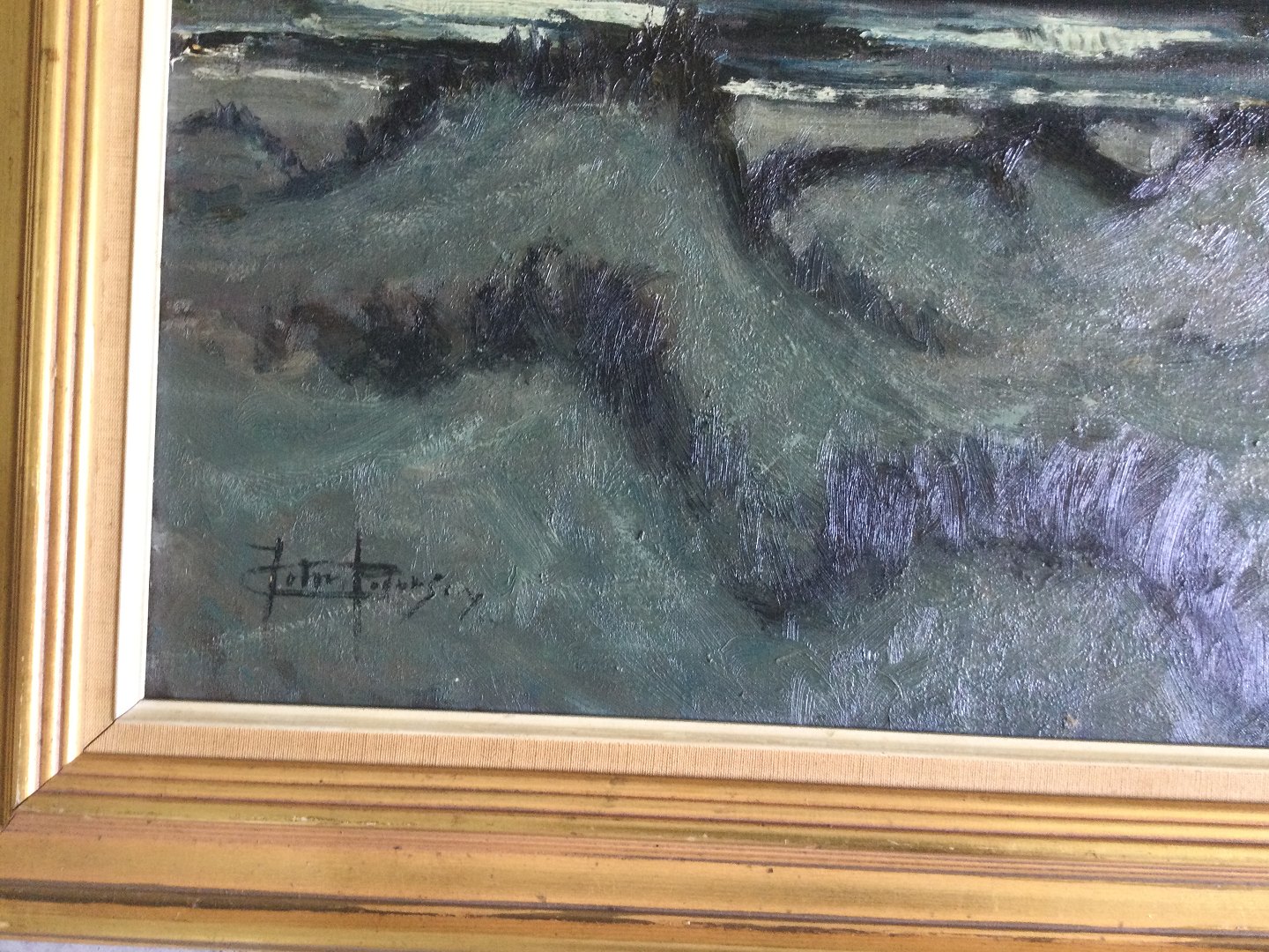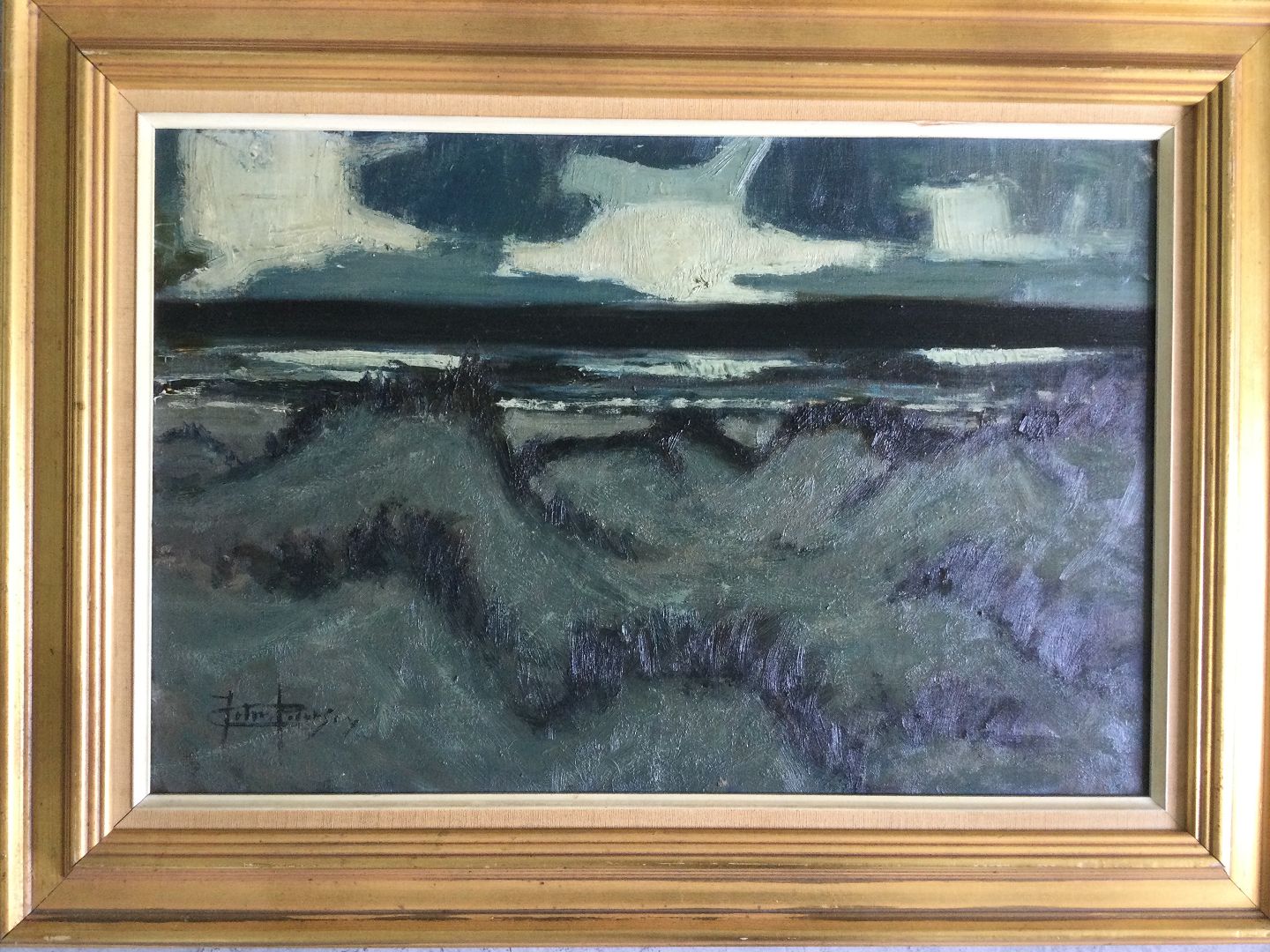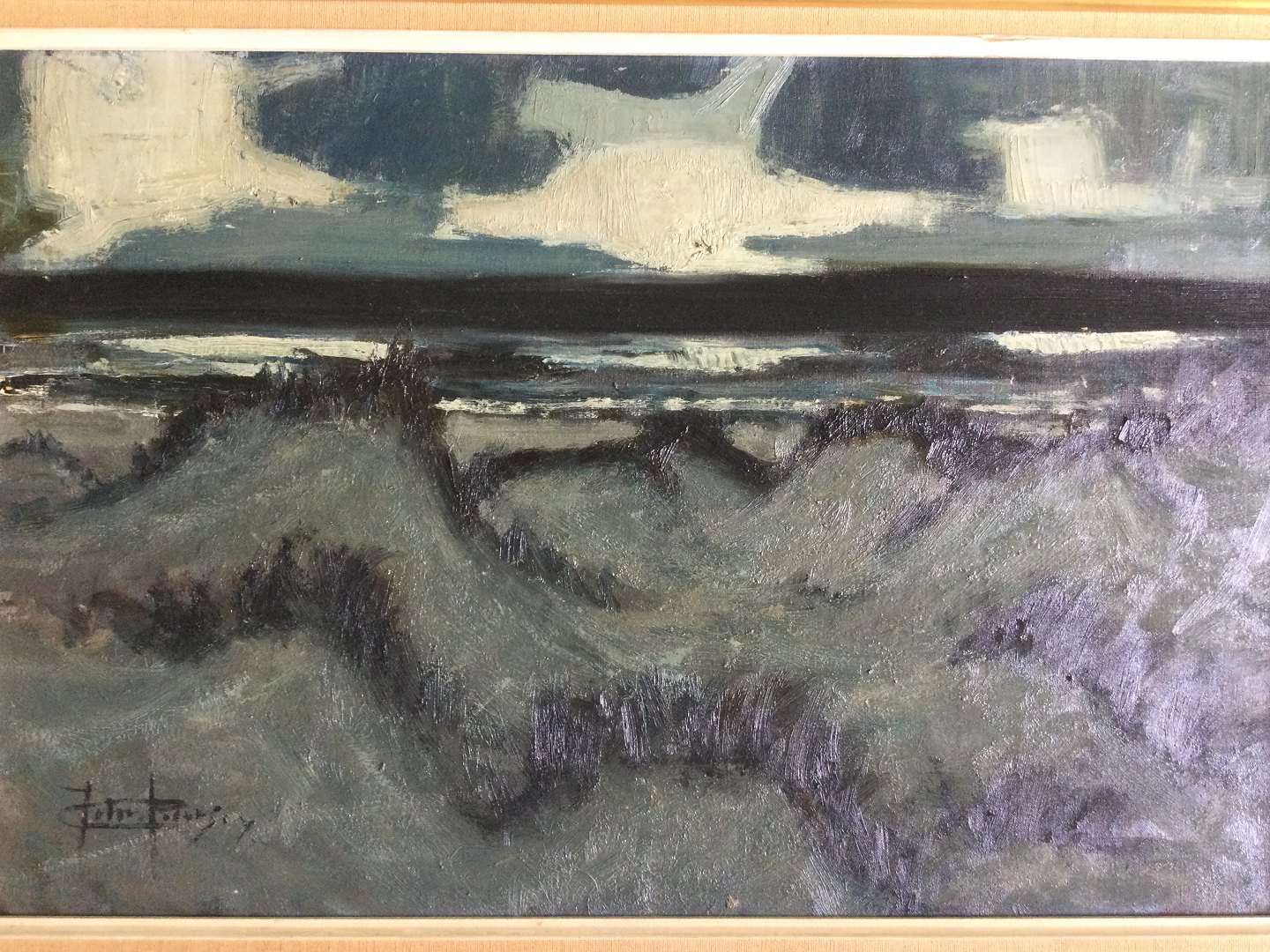 Maleri af John Rubani - Klitter med havet i baggrunden.