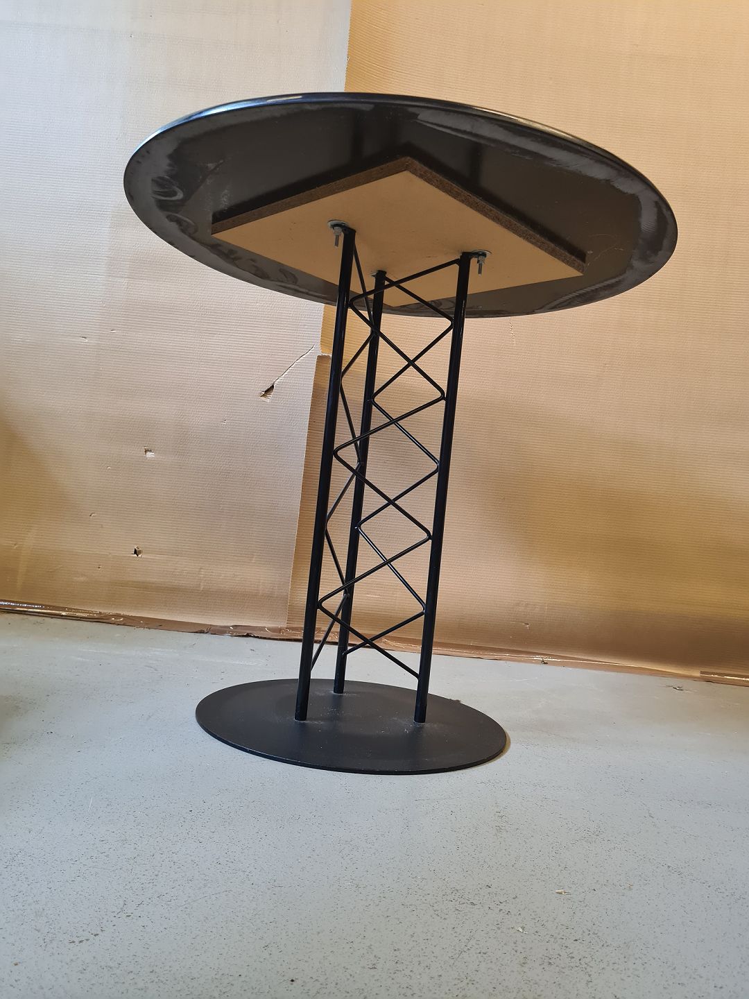 Rundt bord med malet metal stel og plade af stenmasse fra 1990erne.