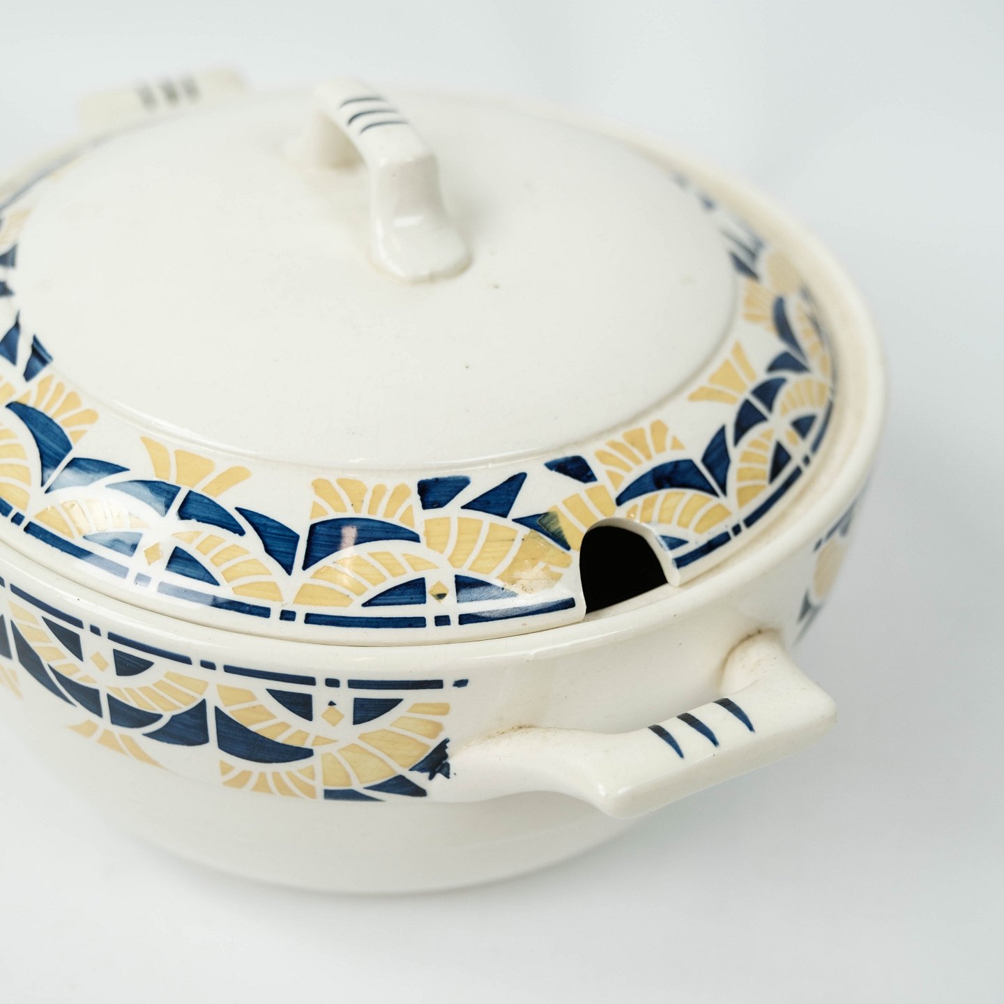 Terrin dekoreret med blå og gule farver fra 1960erne.