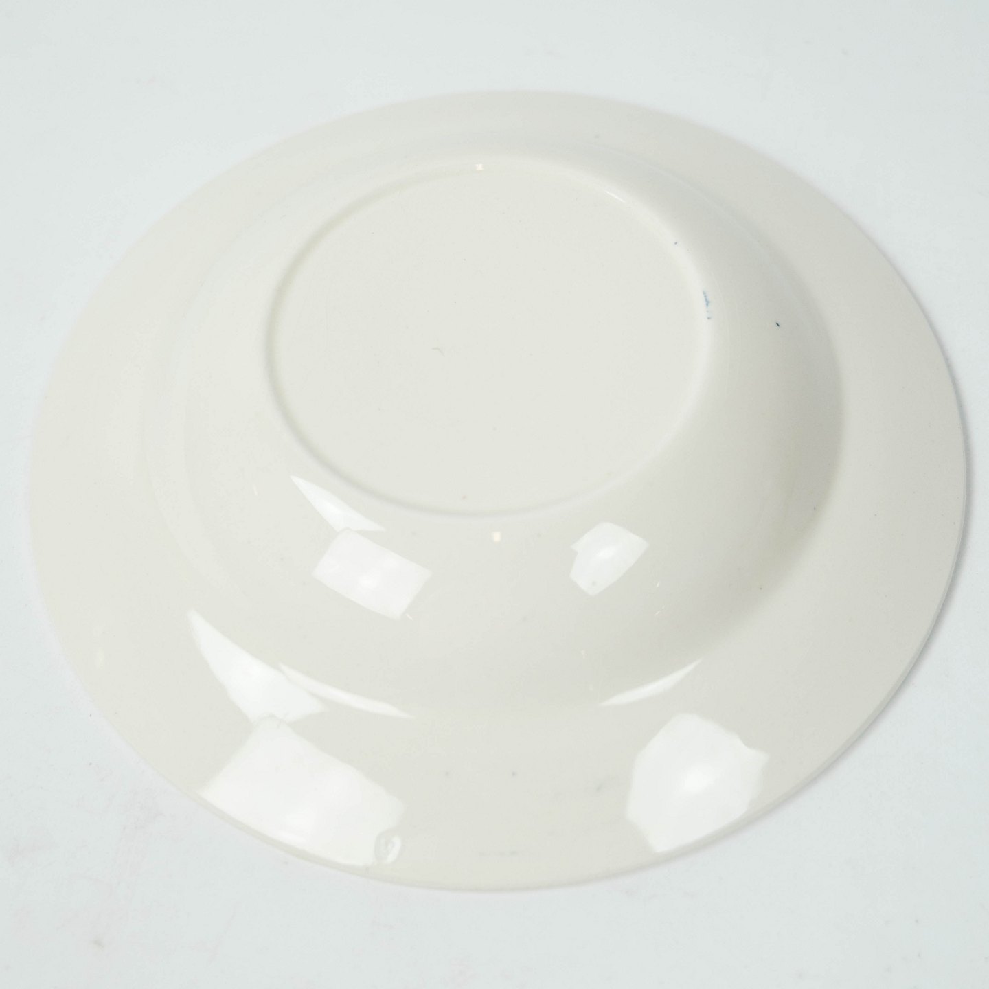 Deep dinner plate decorated with blue and yellow colours from the 1960s.