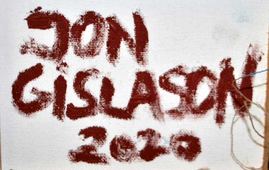 Gislason, Jon (1955 - ) Danmark: En person ved havet ved fuldmåne. Acryl på lærred. Verso signeret 2020. 14 x 18 cm.  Uindrammet.