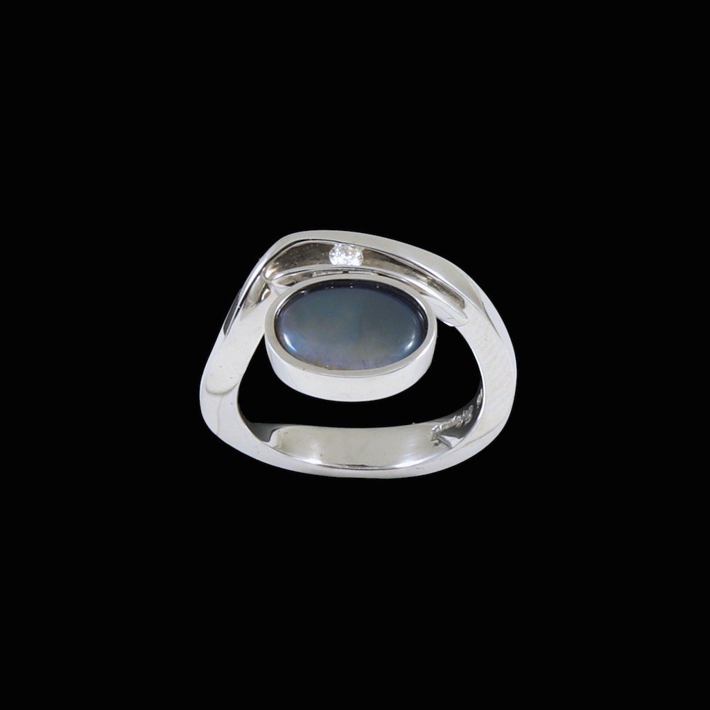 Toftegaard. Ring i 14k hvidguld med sort opal og diamant 0,04ct.