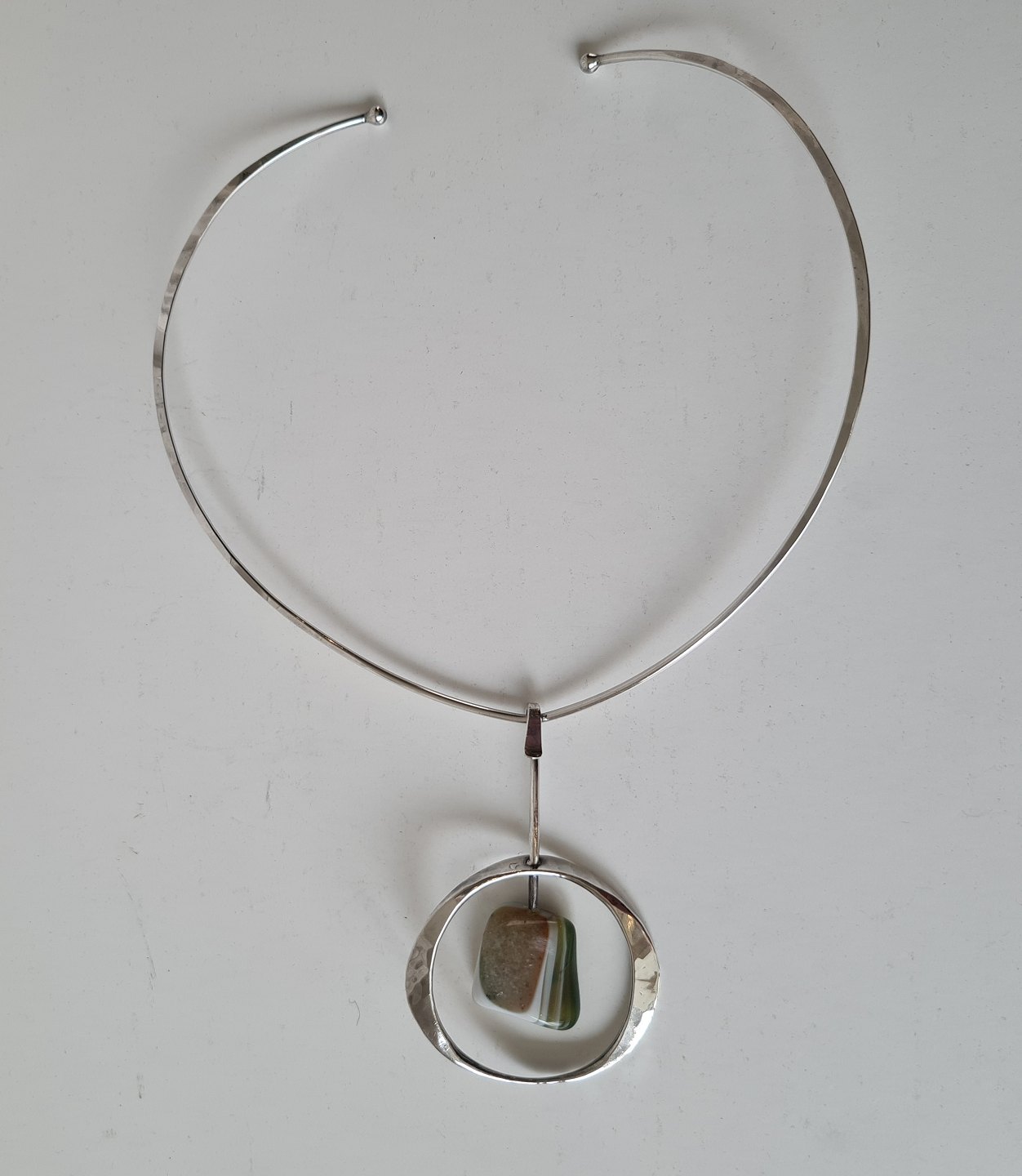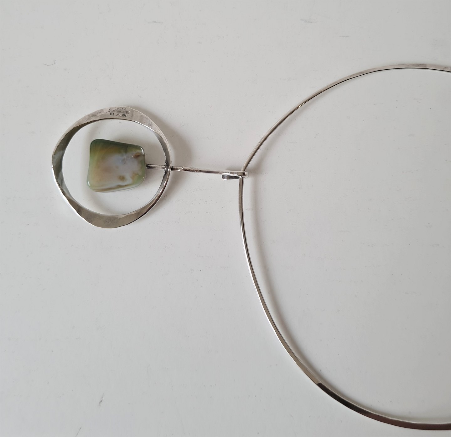 Tone Vigeland vintage halsring i sterlingsølv med grøn sten