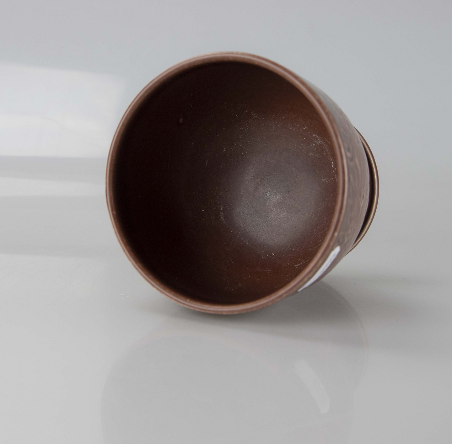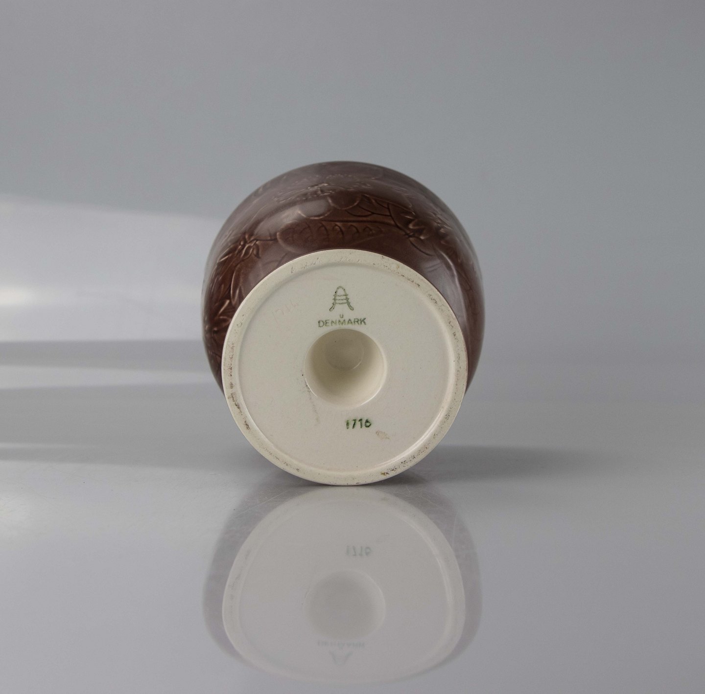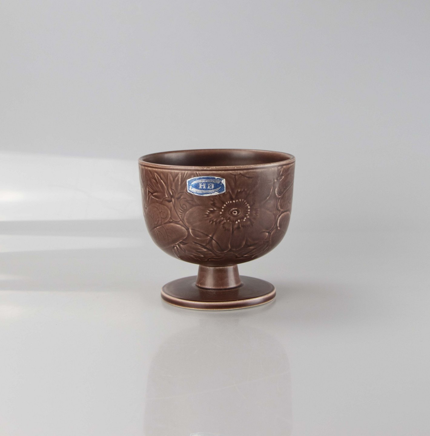 Pokal i brun fajance med motiv af påskeliljer.