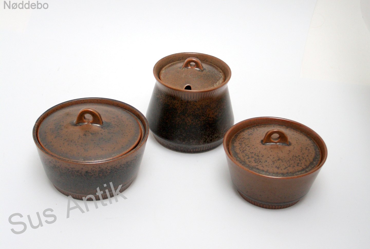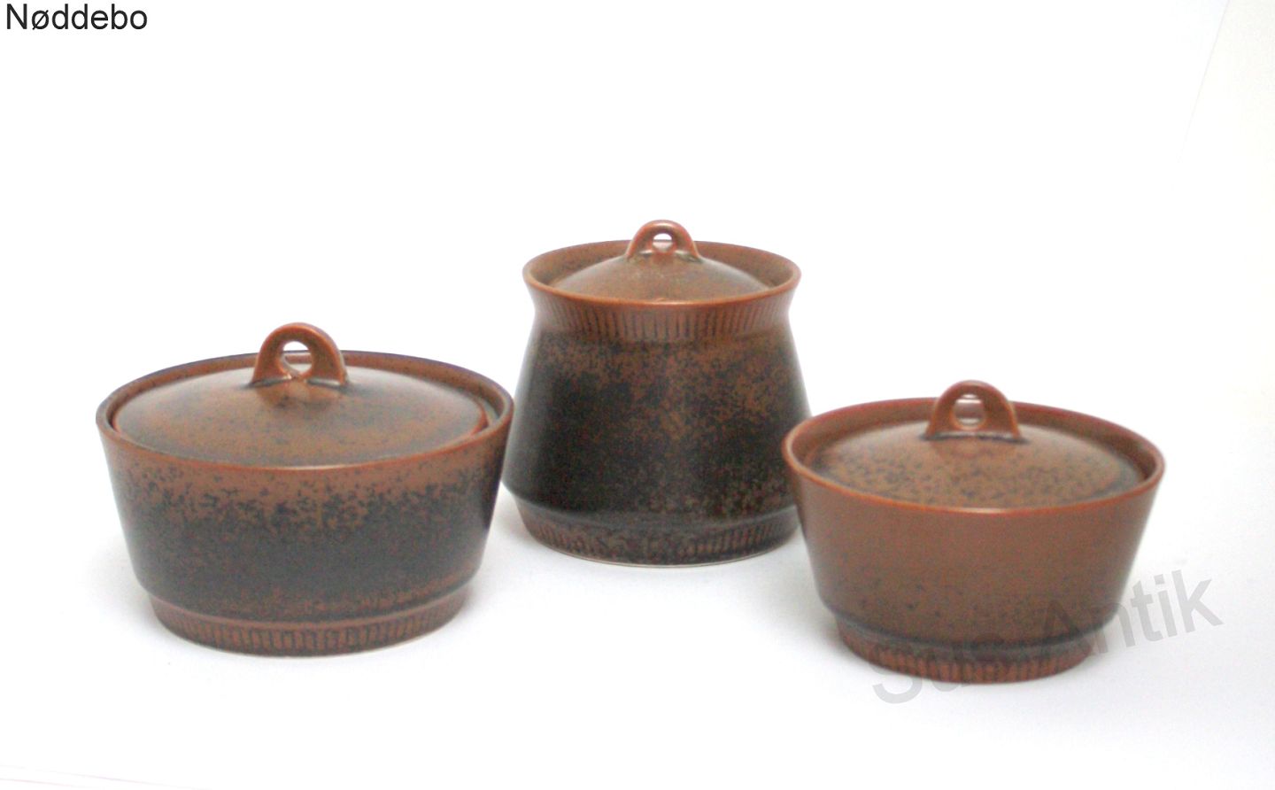 Knabstrup, Knabstrupstellet brun, Nøddebo. Sukker og/eller marmeladeskåle med låg.