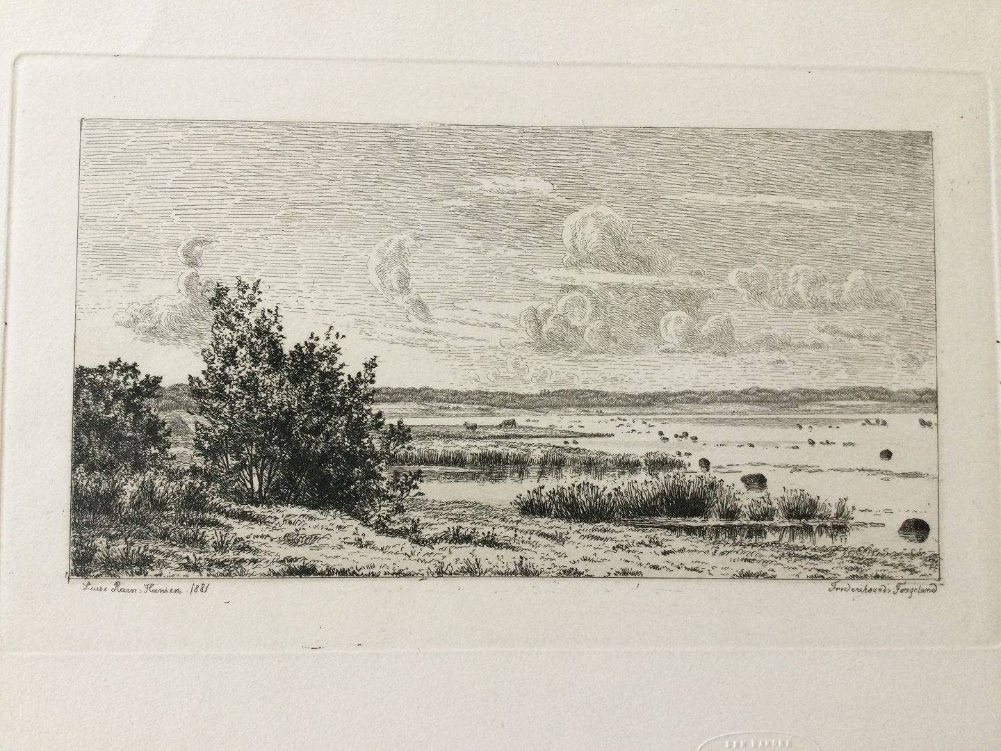 Radering fra DDRF af Louise Ravn-Hansen 1881 - Færgelunden ved Frederikssund.