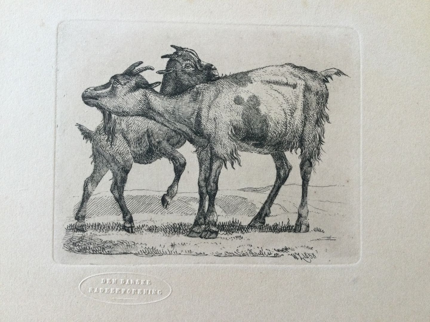 Radering fra DDRF af Johannes Vilhelm Zillen 1858 - 2 geder.