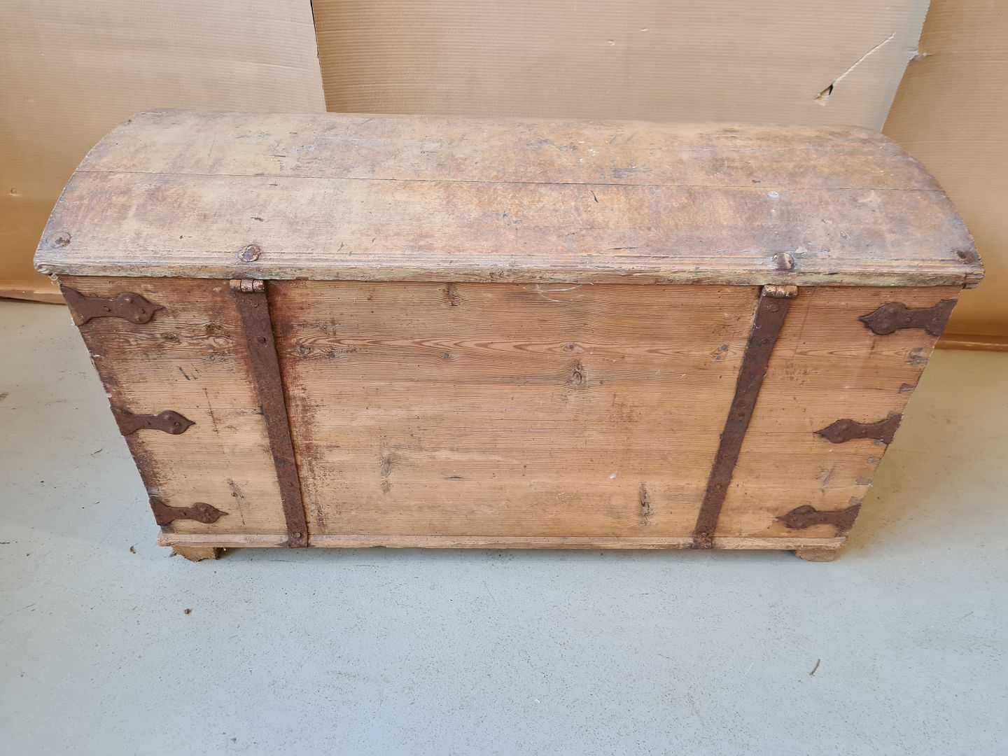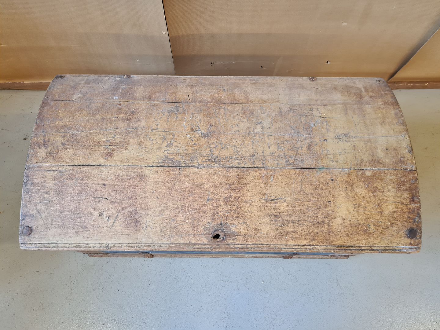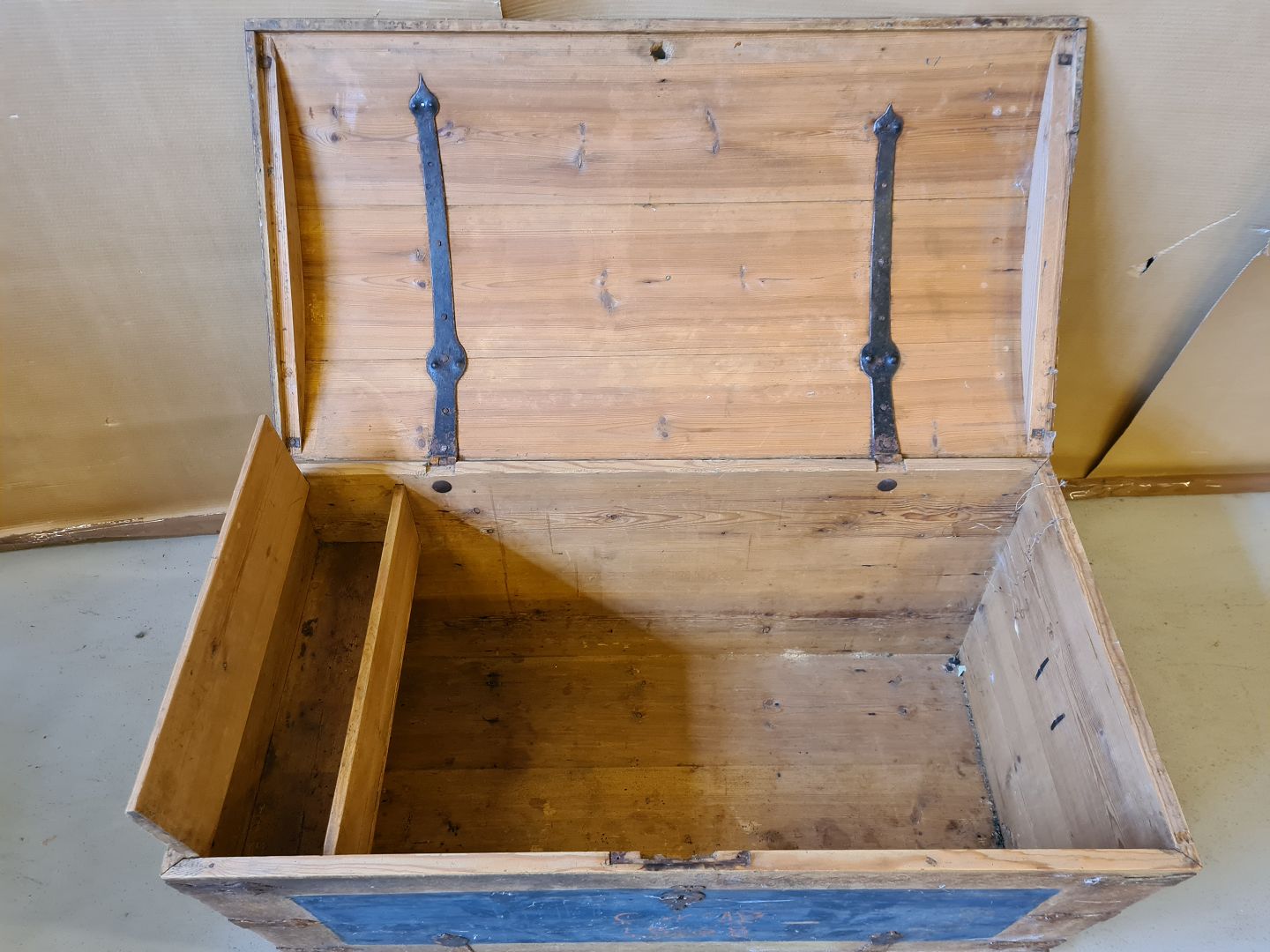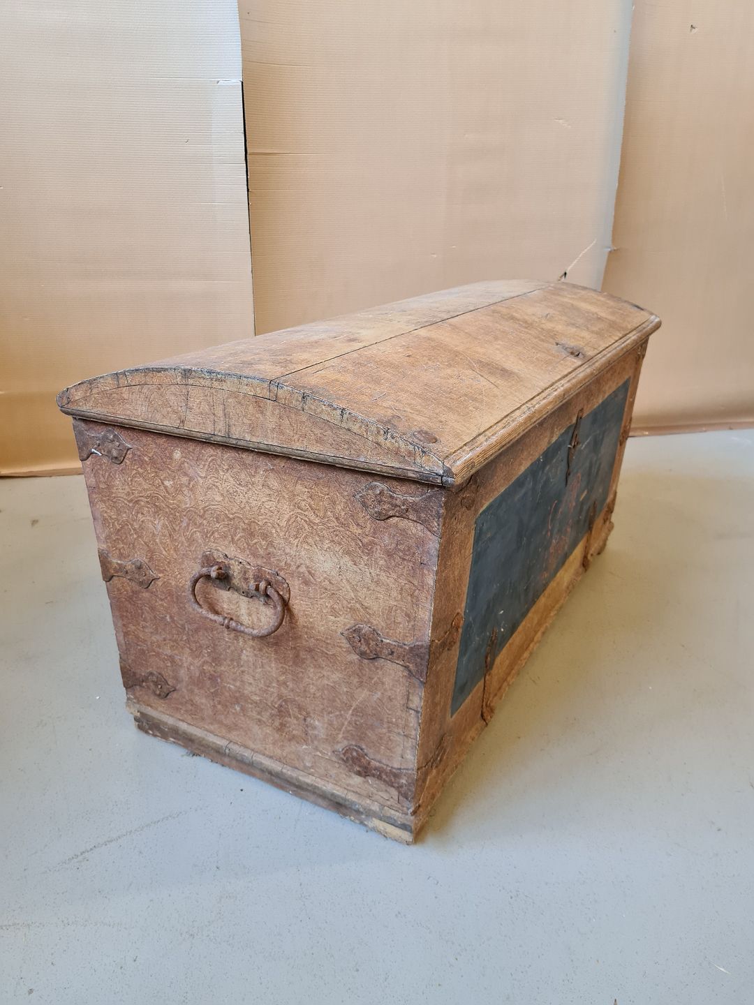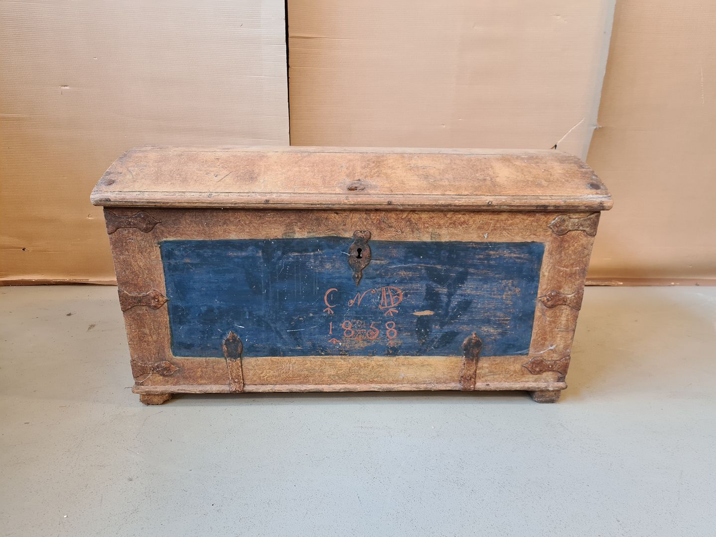 Kiste i malet fyrretræ fra 1858 . Den mangler låsen.