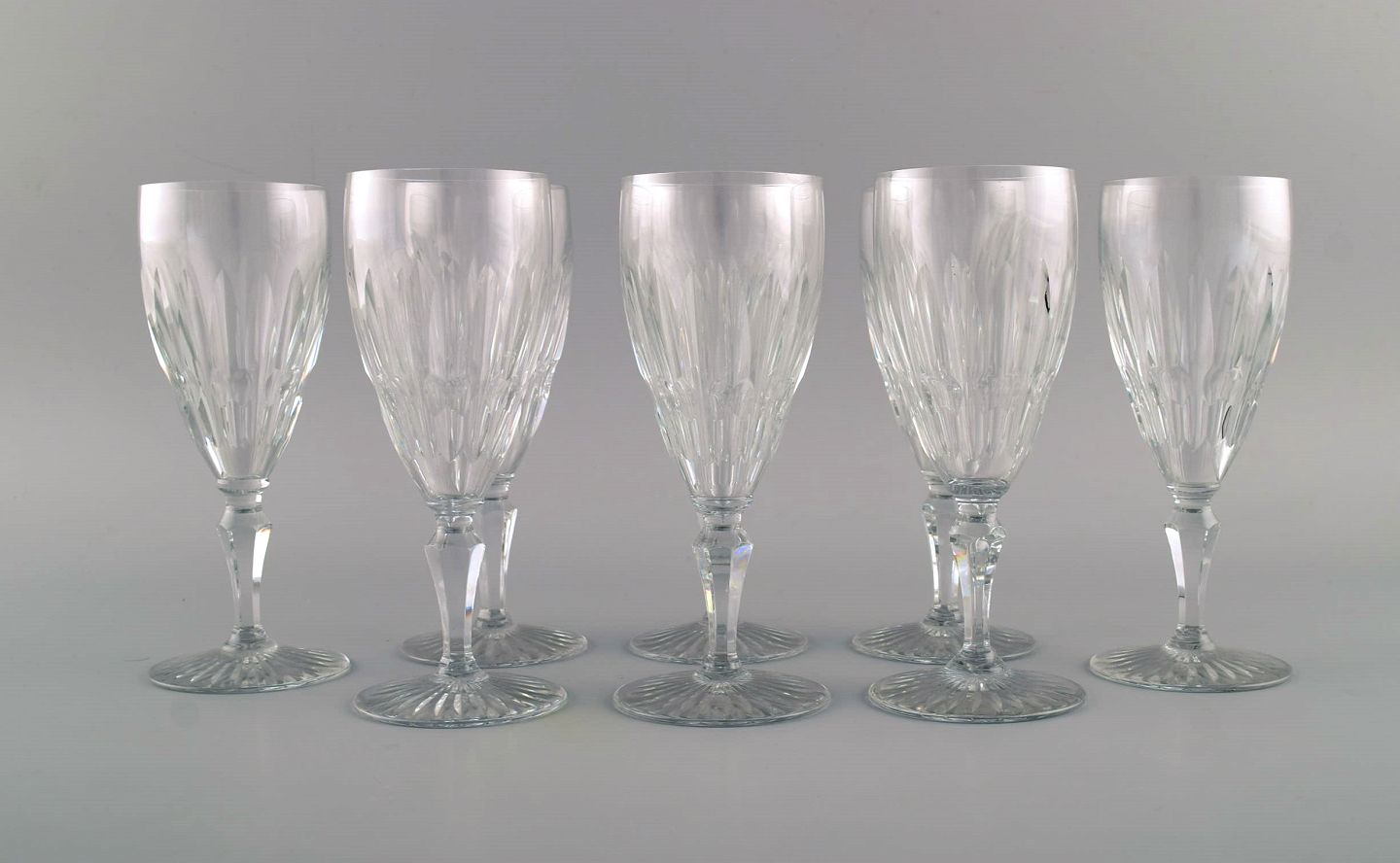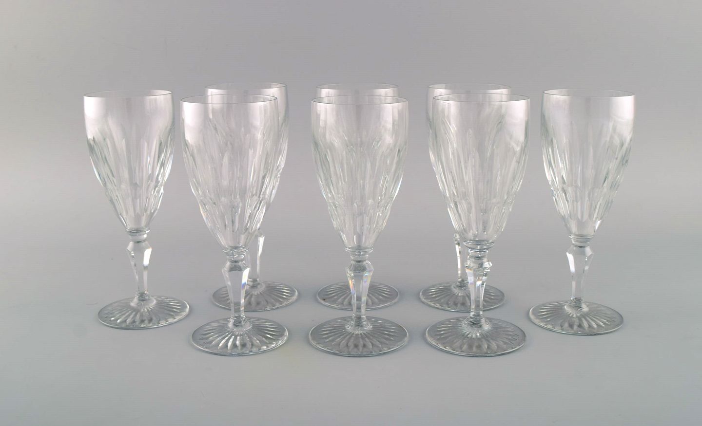 Baccarat, Frankrig. Otte art deco rødvinsglas i klart mundblæst krystalglas. 1930/40'erne.