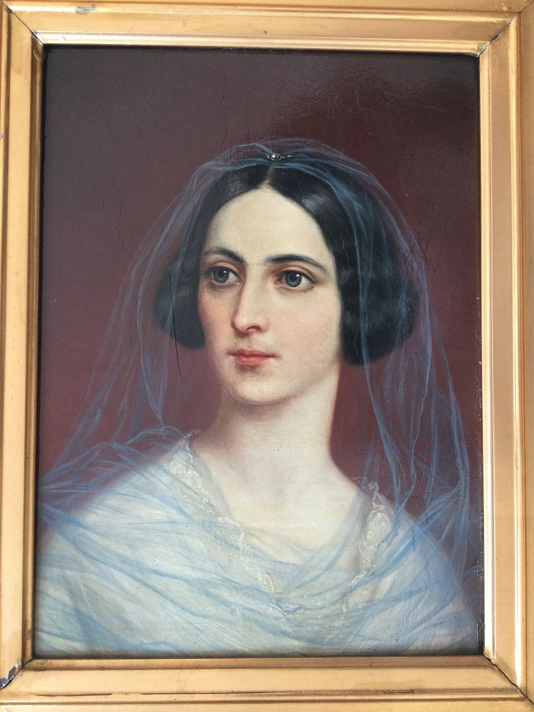 Maleri - Portræt af sorthåret kvinde ca. 1850.