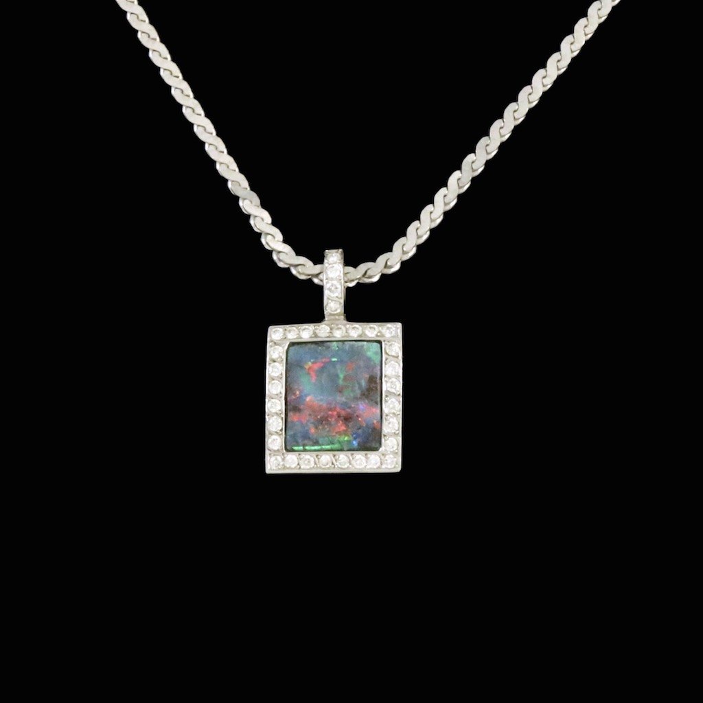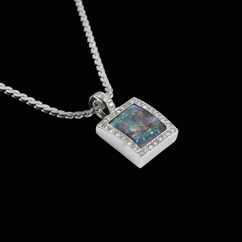Vedhæng i 14k hvidguld med opal og brillianter.