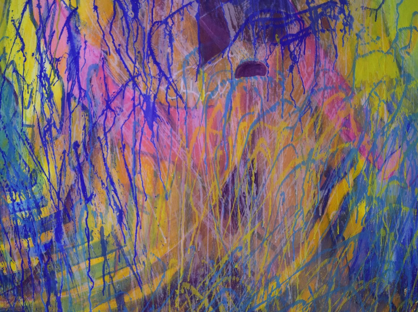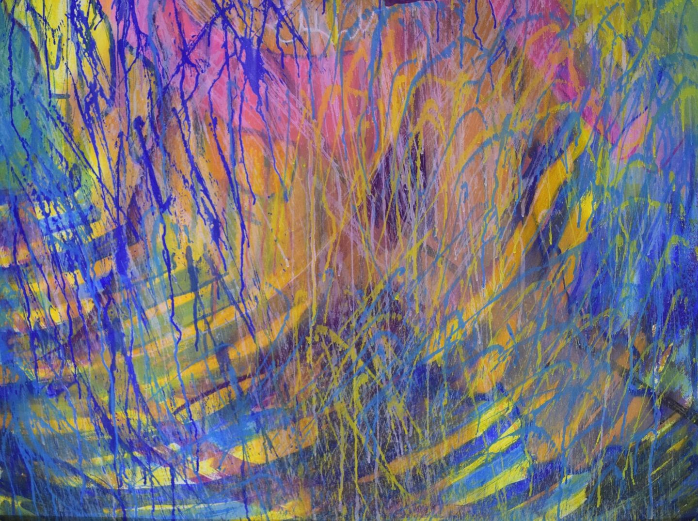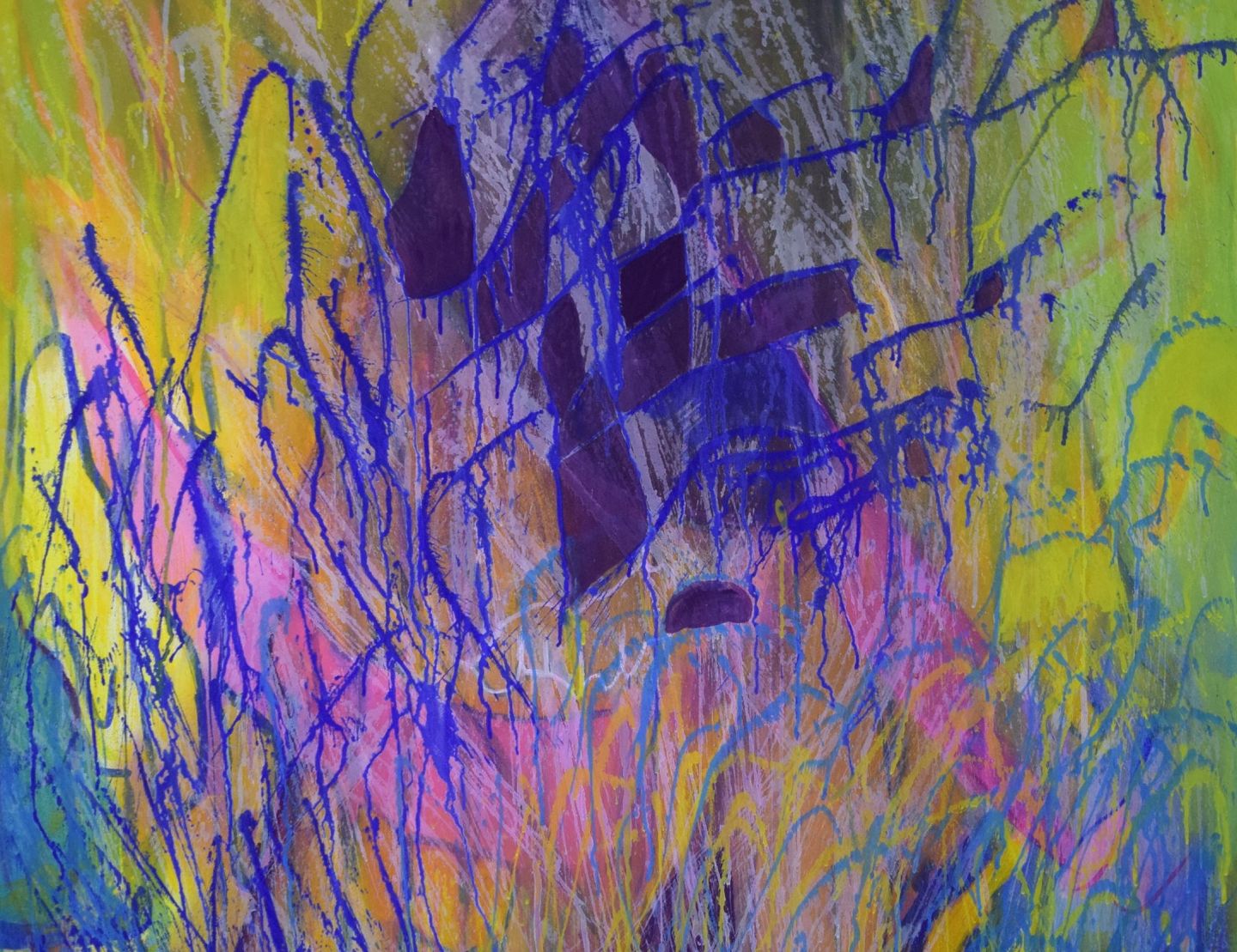 Ivy Lysdal, b 1937. Danish ceramist and painter. Mixed media on cardboard. Large abstract modernist painting. Colorful palette. Late 20th century.