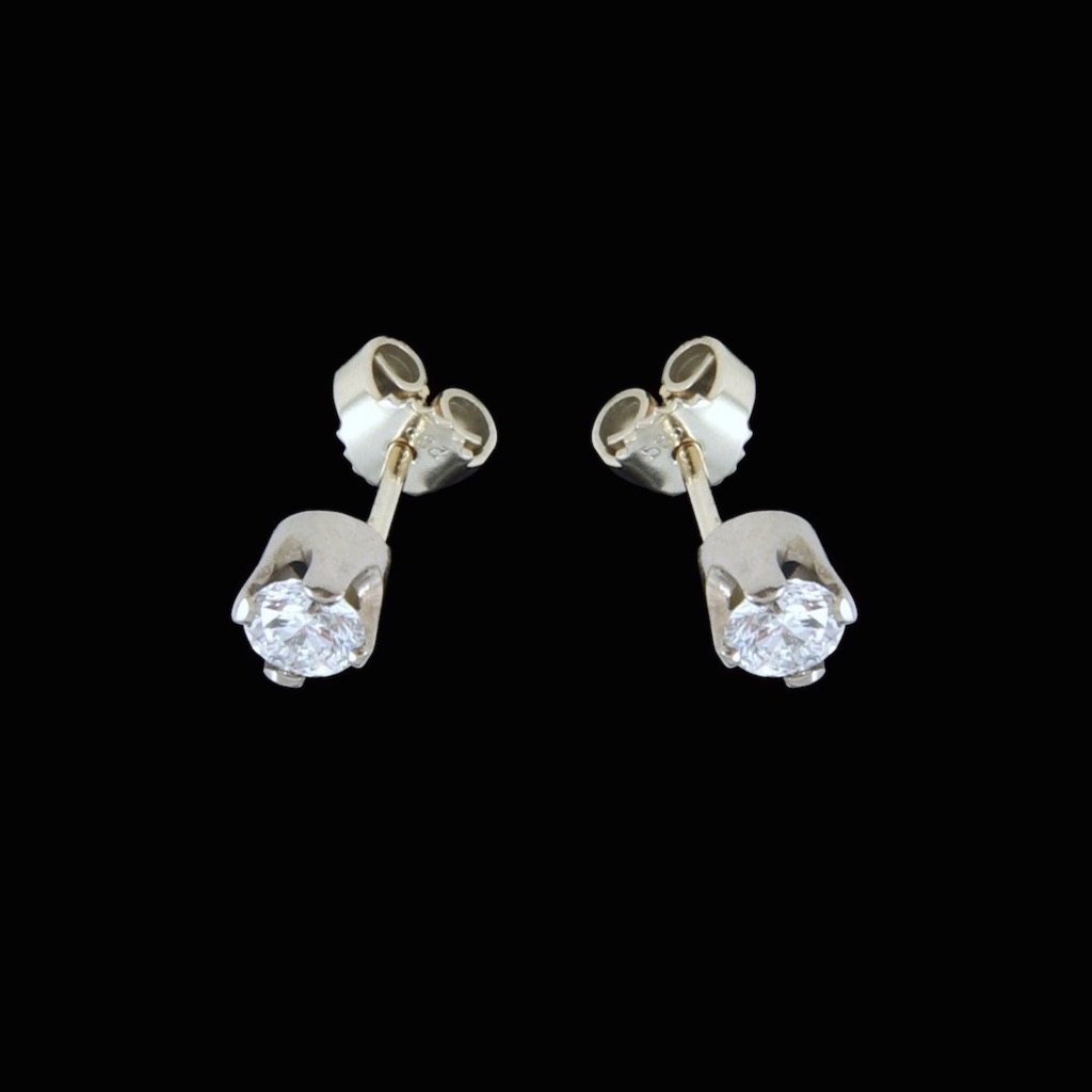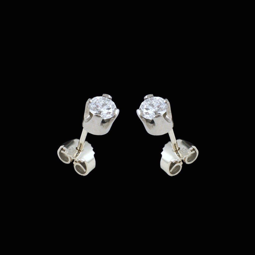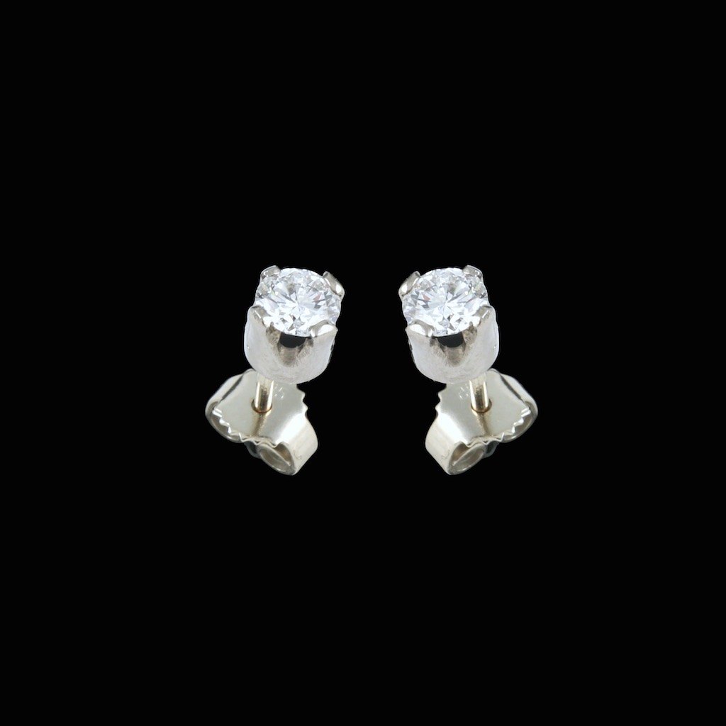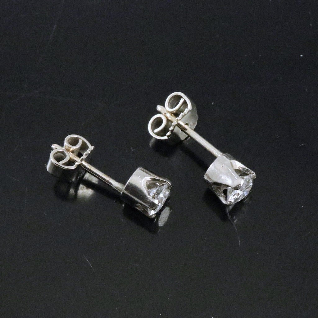 14k White Gold Earsticks with Diamonds. Total 0,94 ct.