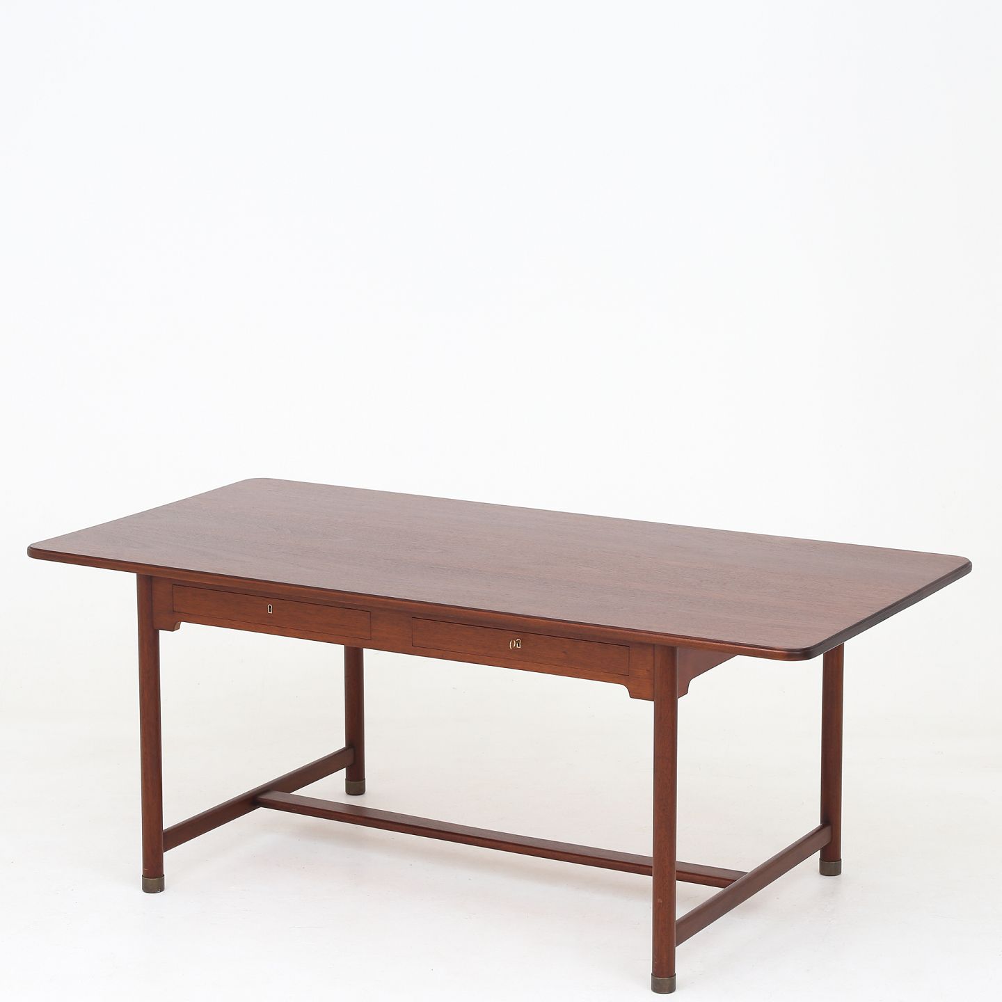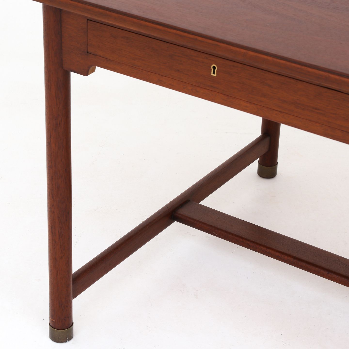 'Partners Desk' skrivebord i mahogni med fire skuffer, profileret kant og sko af messing. Designet i 1935 og vist på Københavns Snedkerlaugs Møbeludstilling i 1938. Dette bord blev udført til udstillingen 'Dansk Kunsthaandværk' på Nationalmuseet i Stockholm i 1942 og kommer herfra.