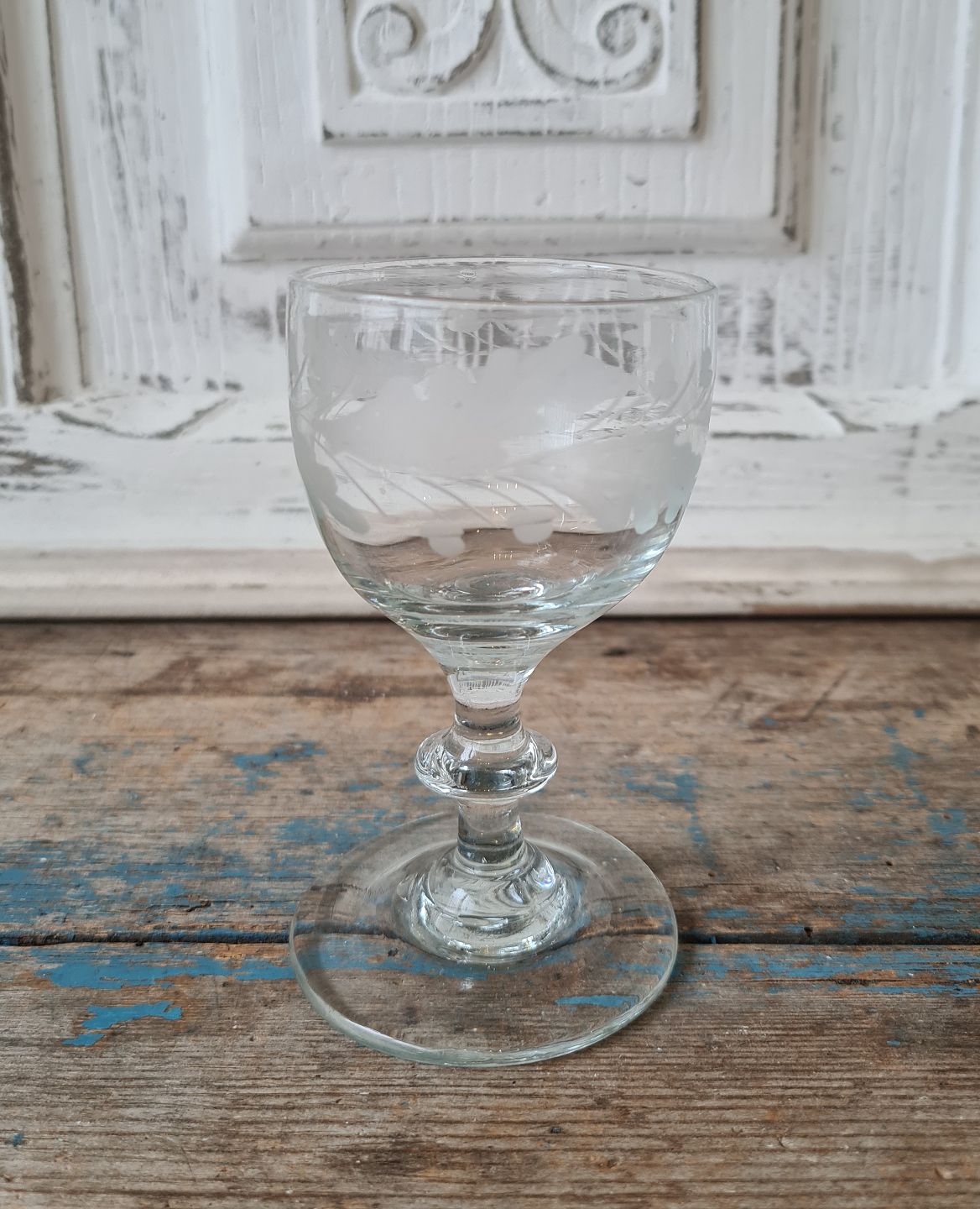 Vinglas på stilk med knap, dekoreret med matslebet egeløv med agern.