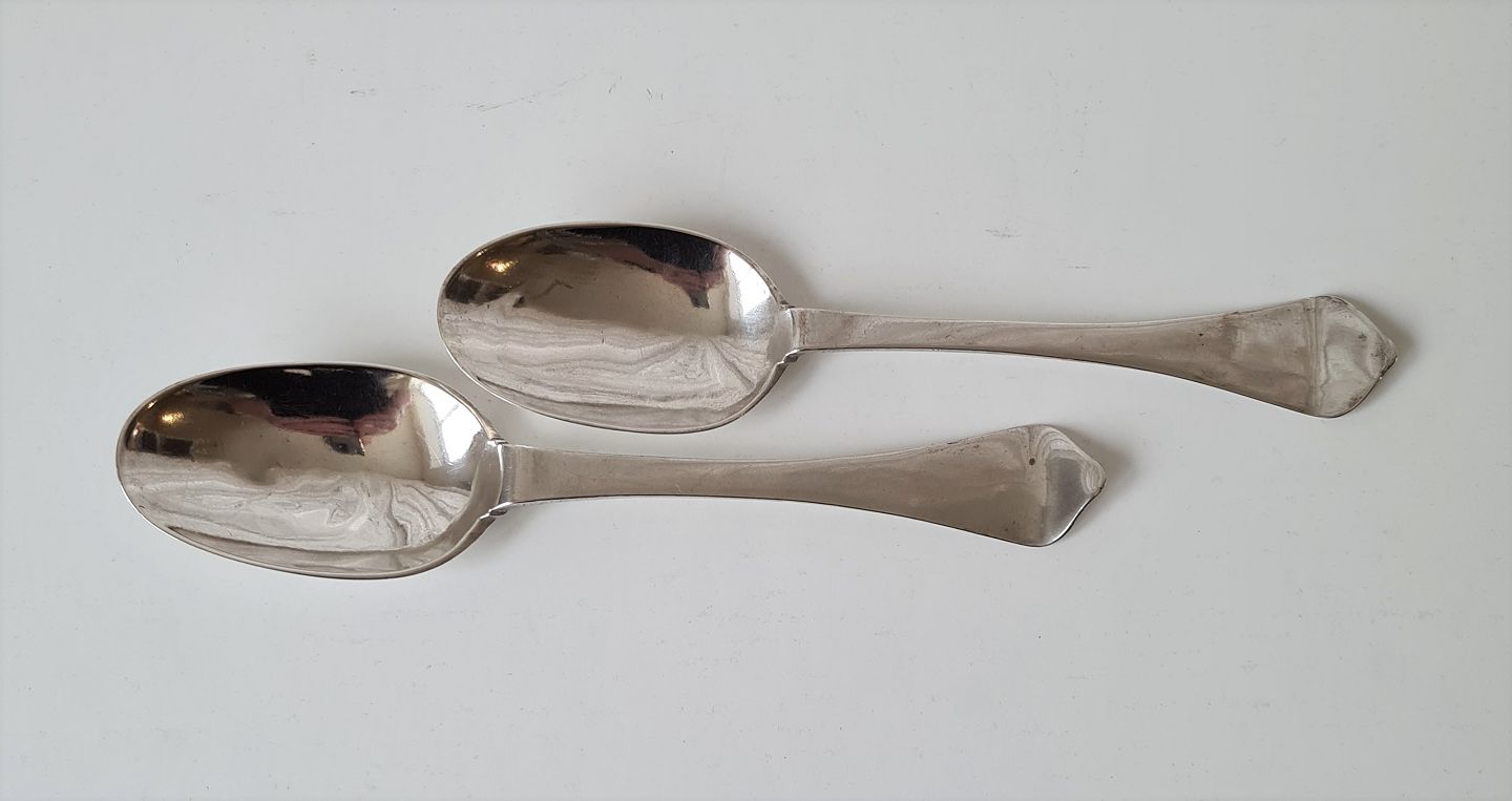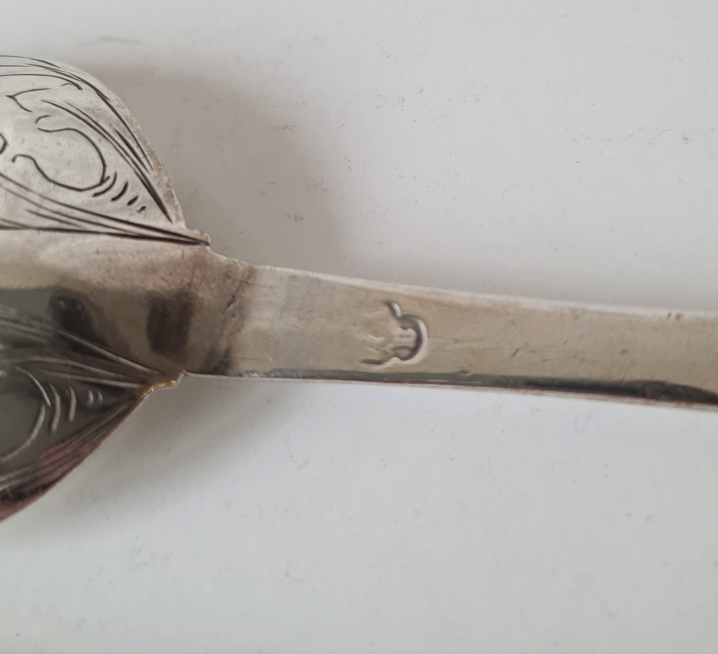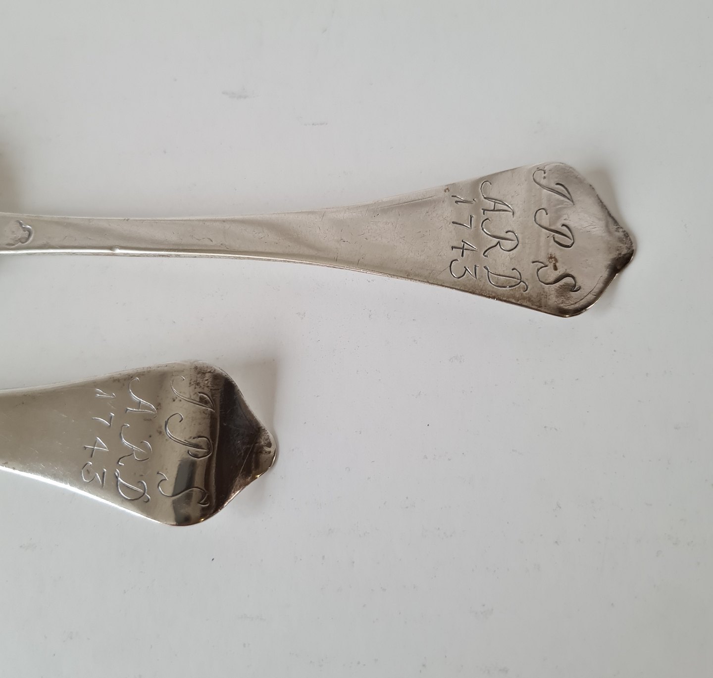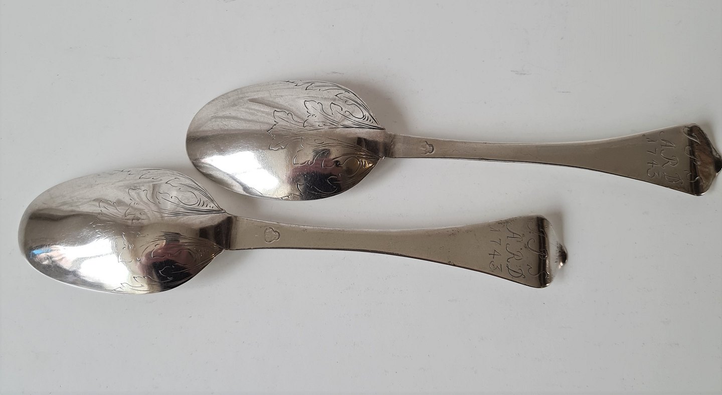 Par 1700 tals brudeskeer i sølv graveret med ejerinitialer samt årstal 1743