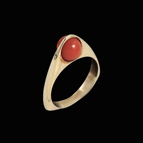 Henning Ulrichsen. Ring i 14k guld med koral.