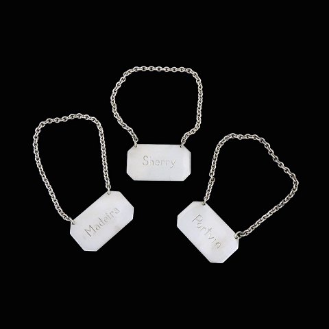 A. Halberstadt - Copenhagen. Tre flaskeskilte i Sølv. - Madeira, Sherry & Portvin.