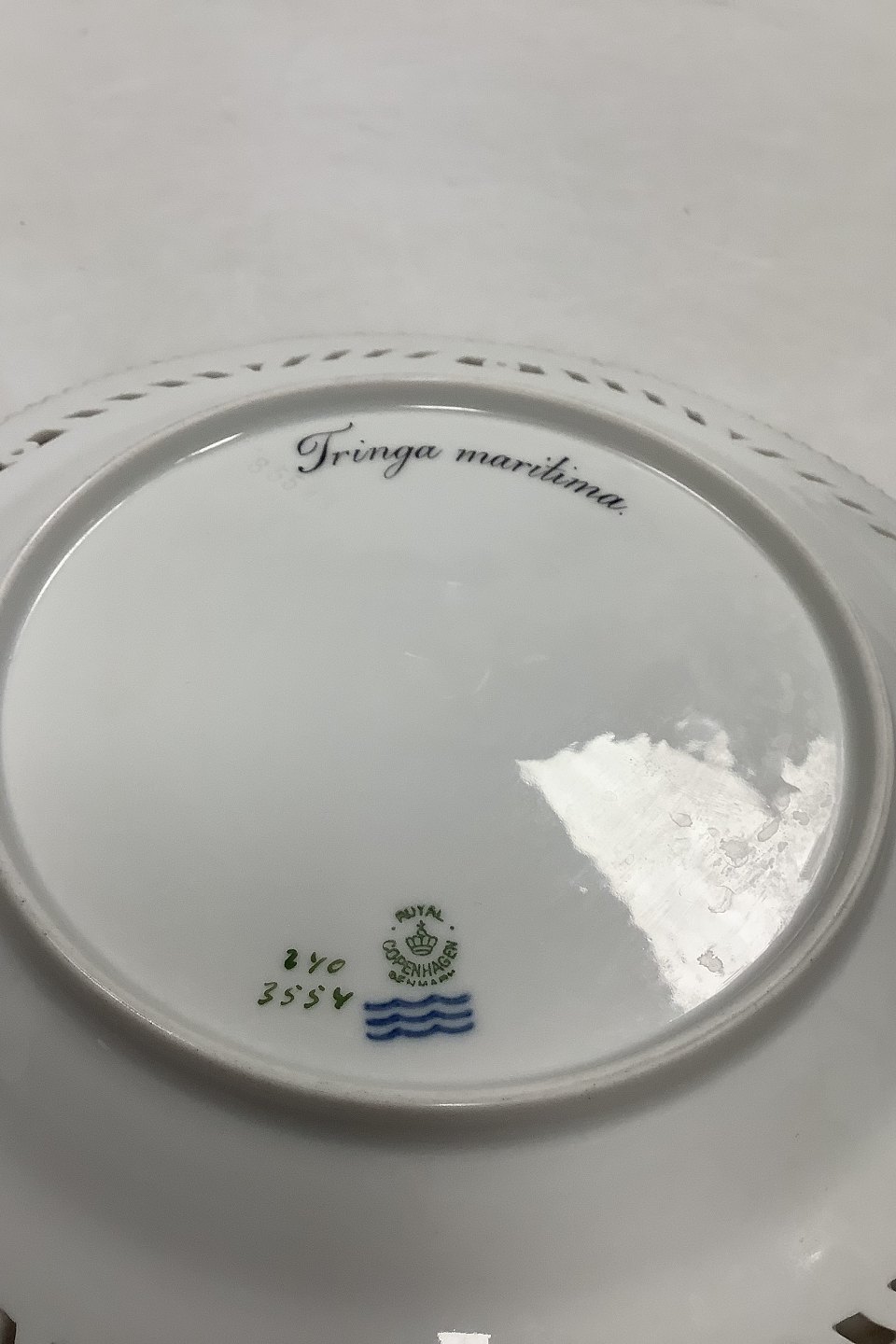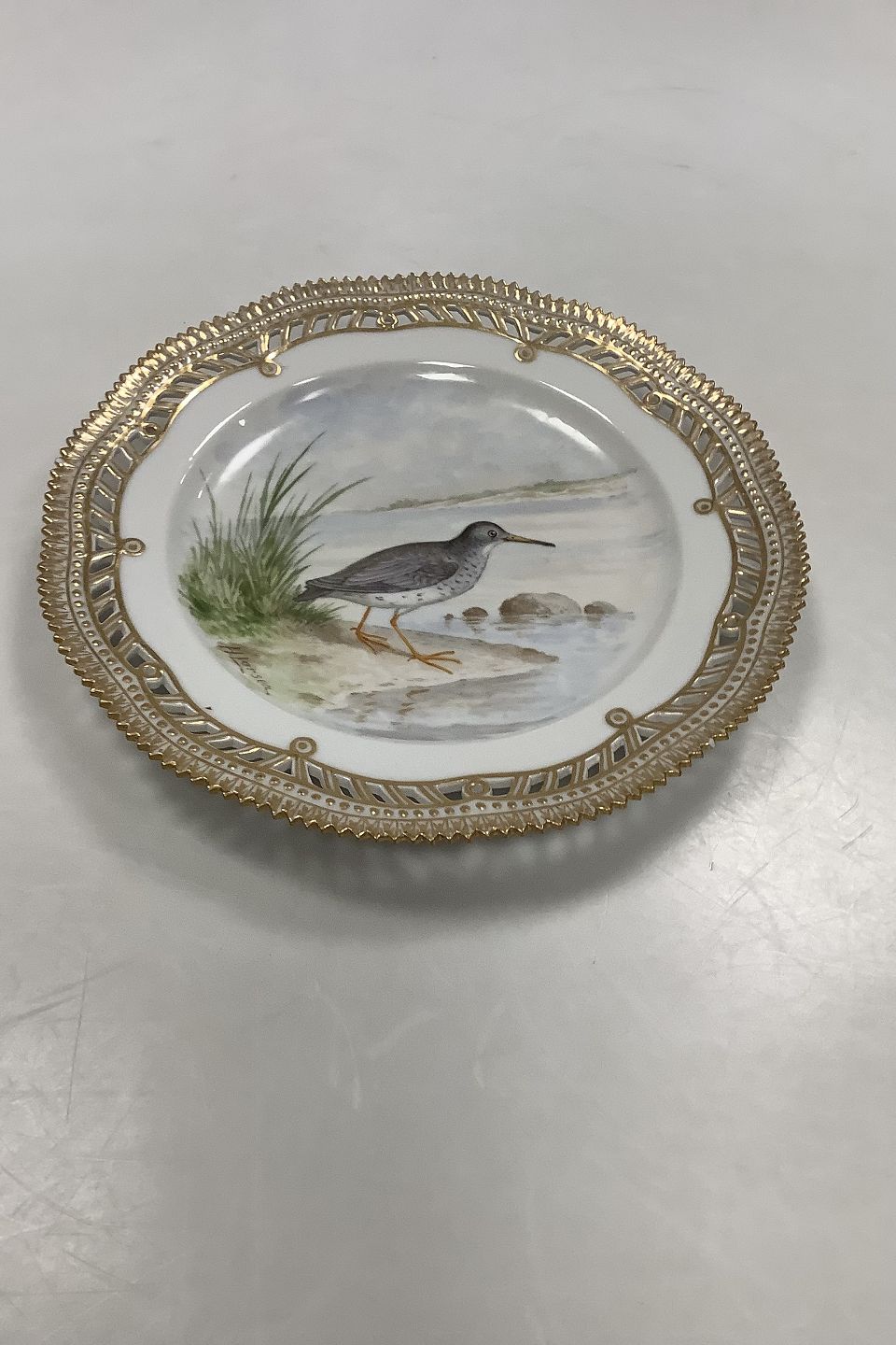 Royal Copenhagen Flora Danica Fugle Frokosttallerken No 20/3554 med gennembrudt kant.