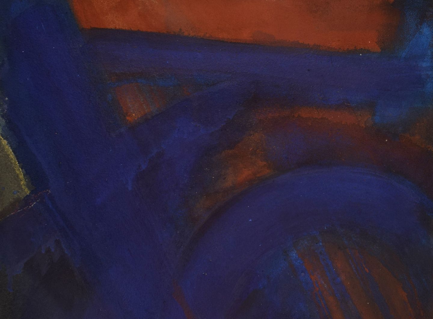 Ole Bjørn Krüger (1922-2007), Dansk kunstner. Olie på japanpapir lagt på plade. Modernistisk komposition. 1960/70'erne.