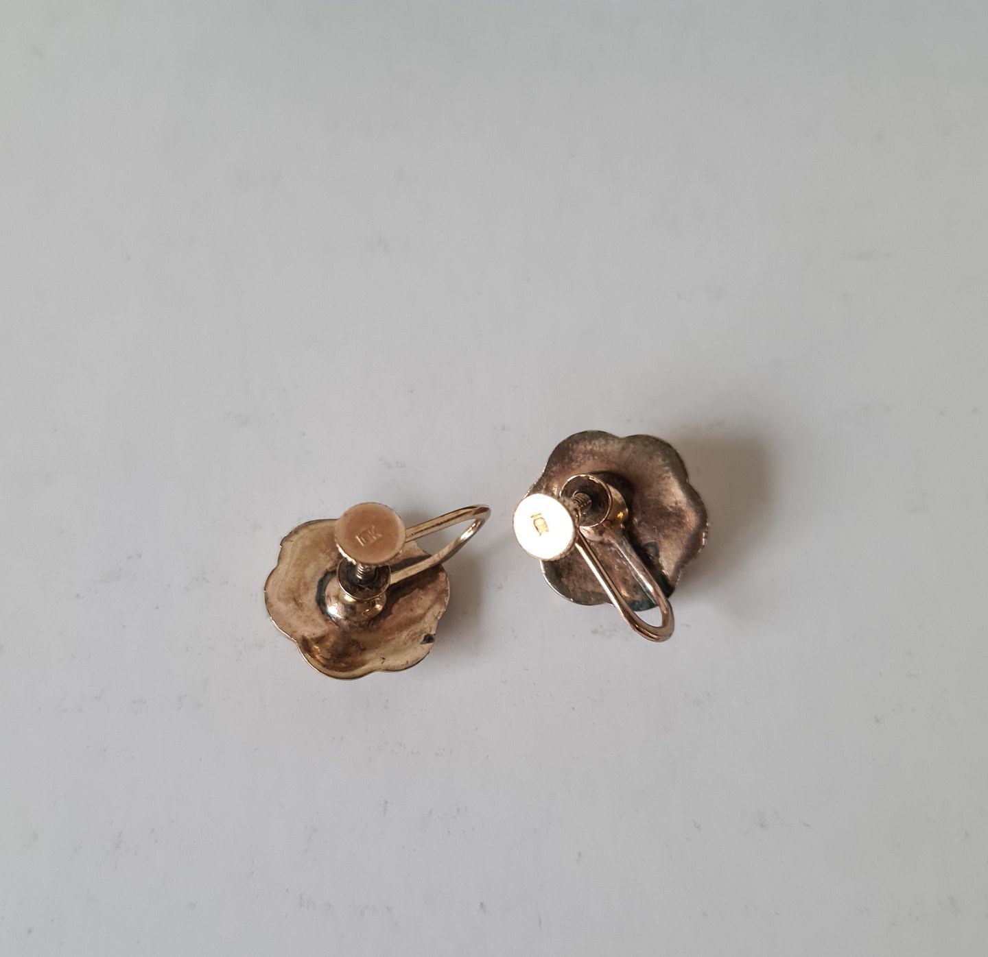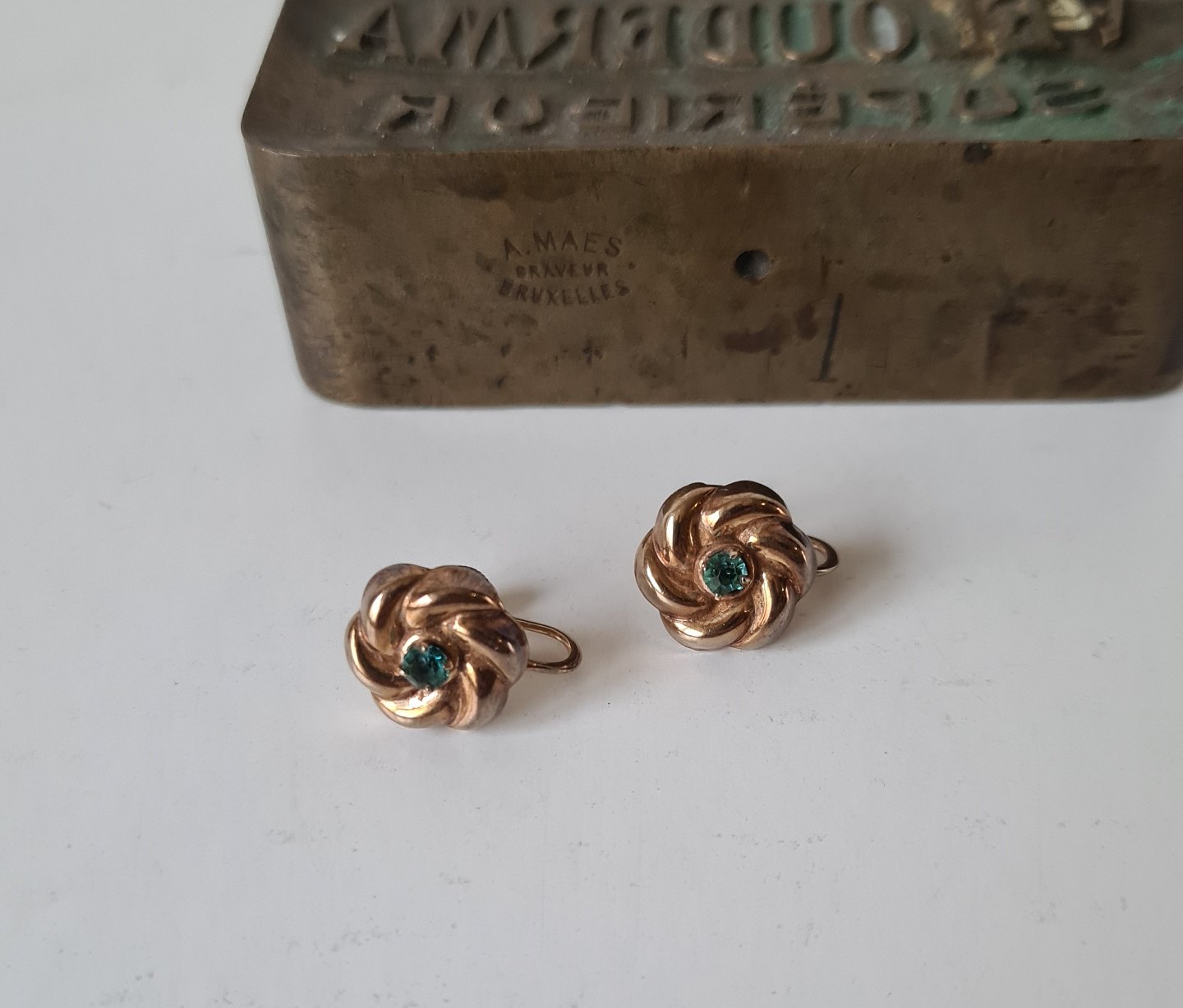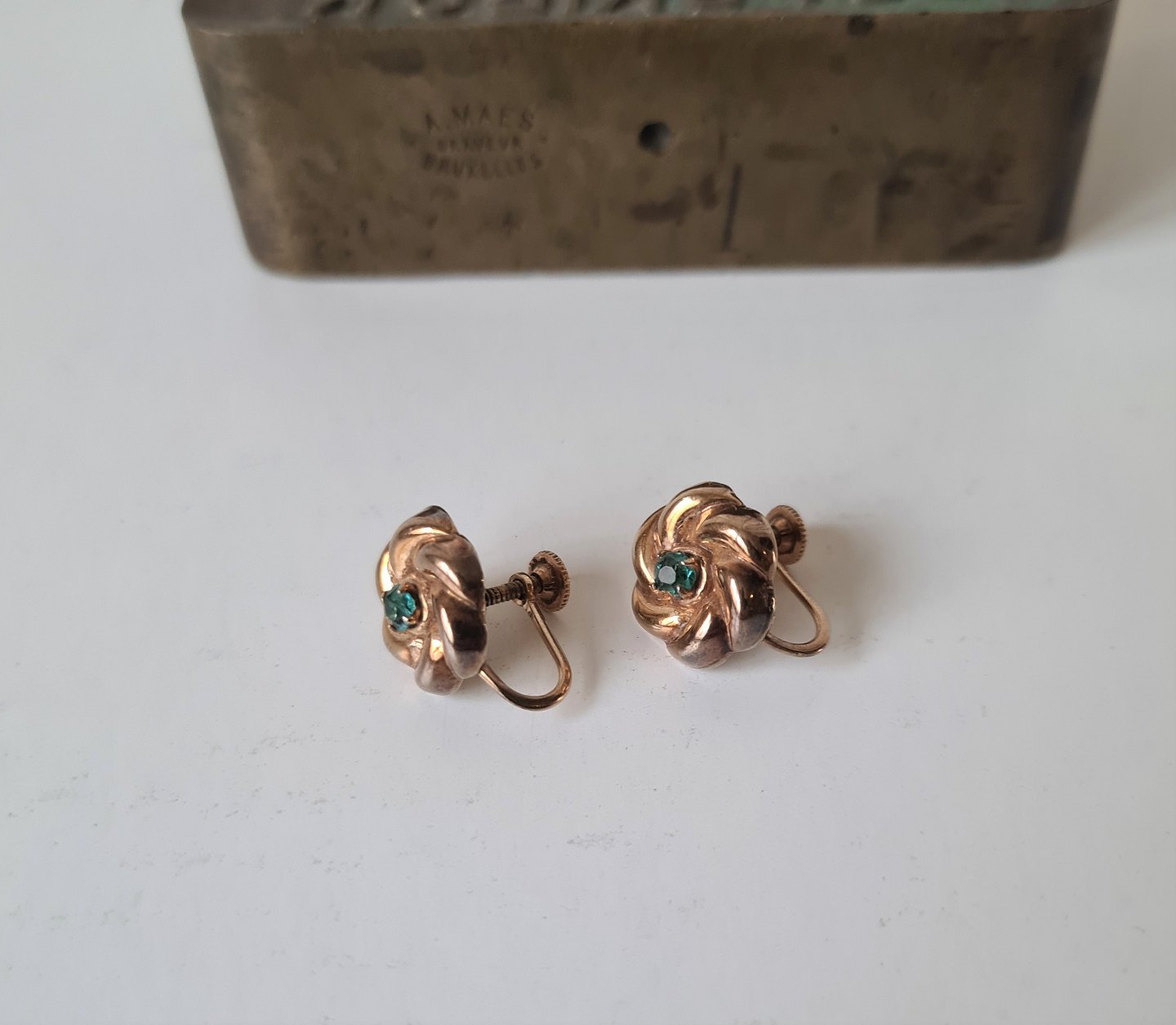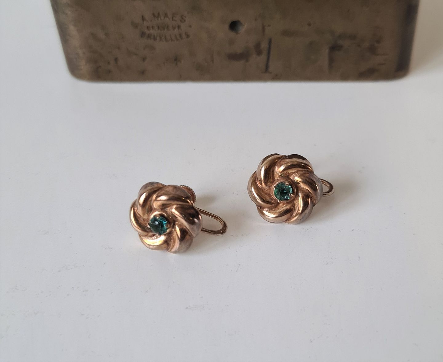 Victorianske øreskruer i 10 kt guld udformet som blomst prydet med smaragd