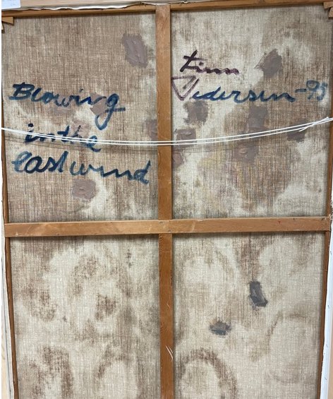 "Blowing in the east Wind" Stort flot olie maleri på lærred i ny elegant sølv svæveramme.