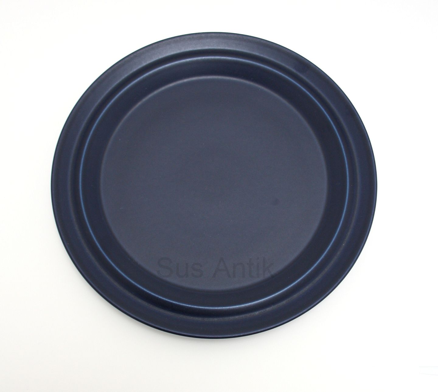 Arabia, Blues, Tallerkener. Designet af Heikki Orvola i 1992 og produceret frem til 1998. Stellet er i en mat, mørk navy blue glasur. Det er owen, dishwasher and freezer proof.