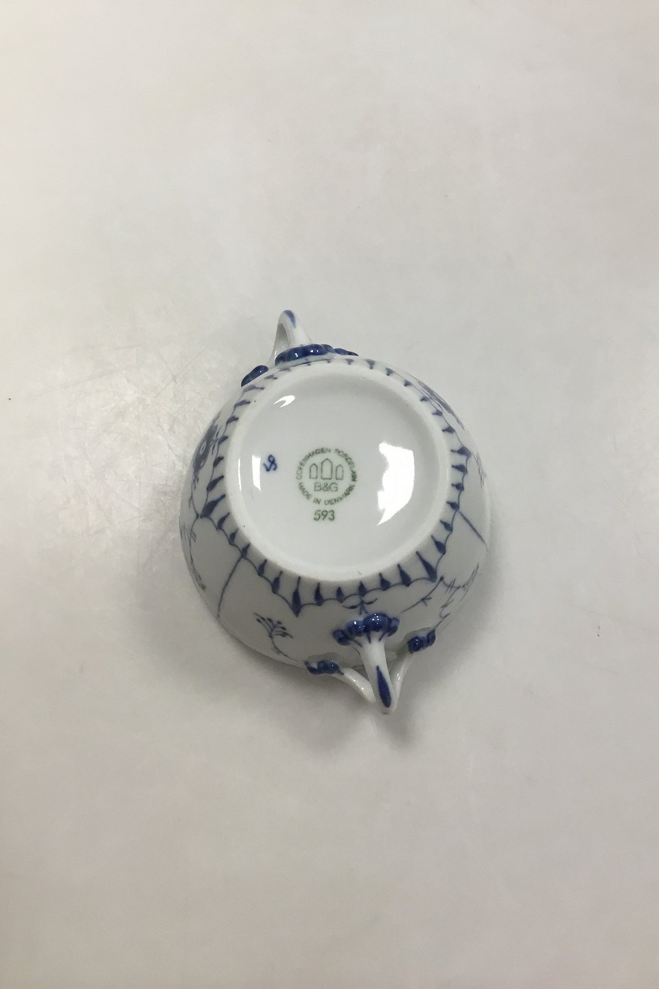 Bing & Grøndahl Blåmalet Musselmalet Sukkerskål No 593. Måler 9 x 6 cm (3 35/64 x 2 23/64 in). Mangler låg.