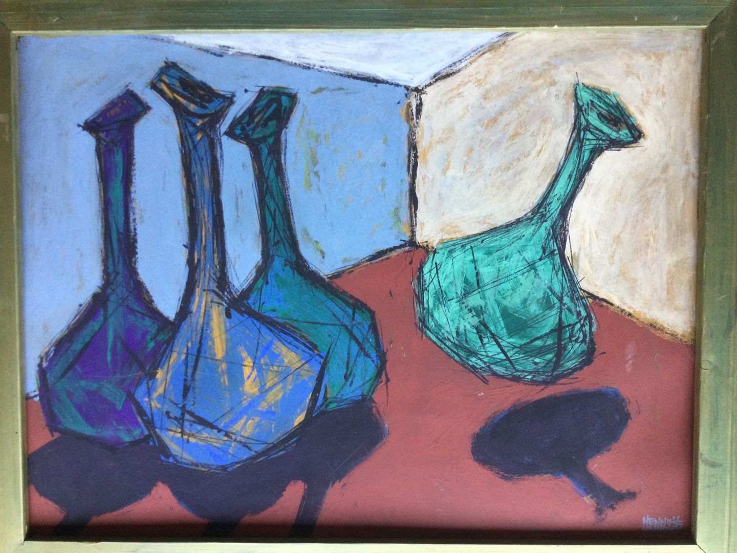 Maleri af Henning Knudsen - Opstilling med karafler
