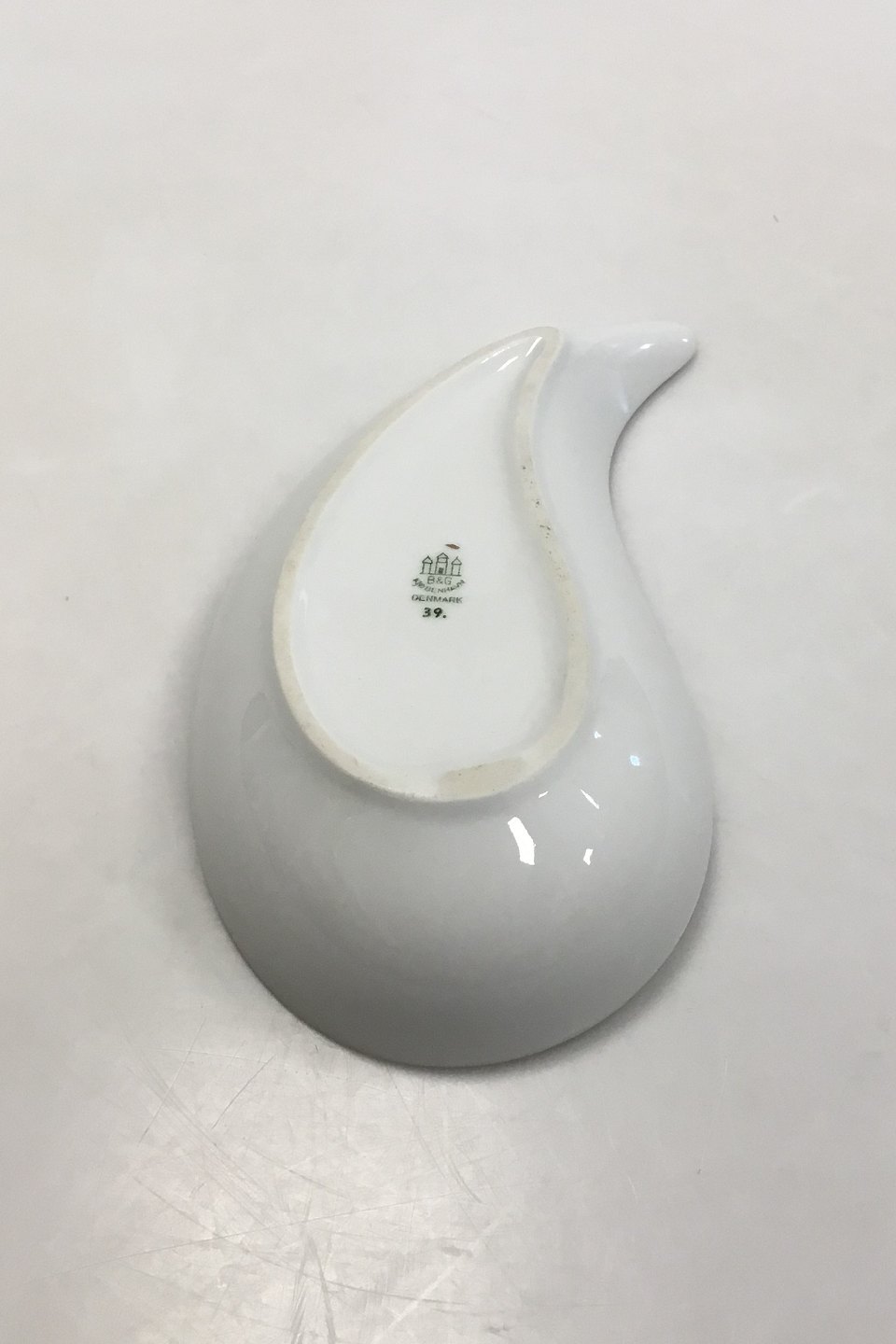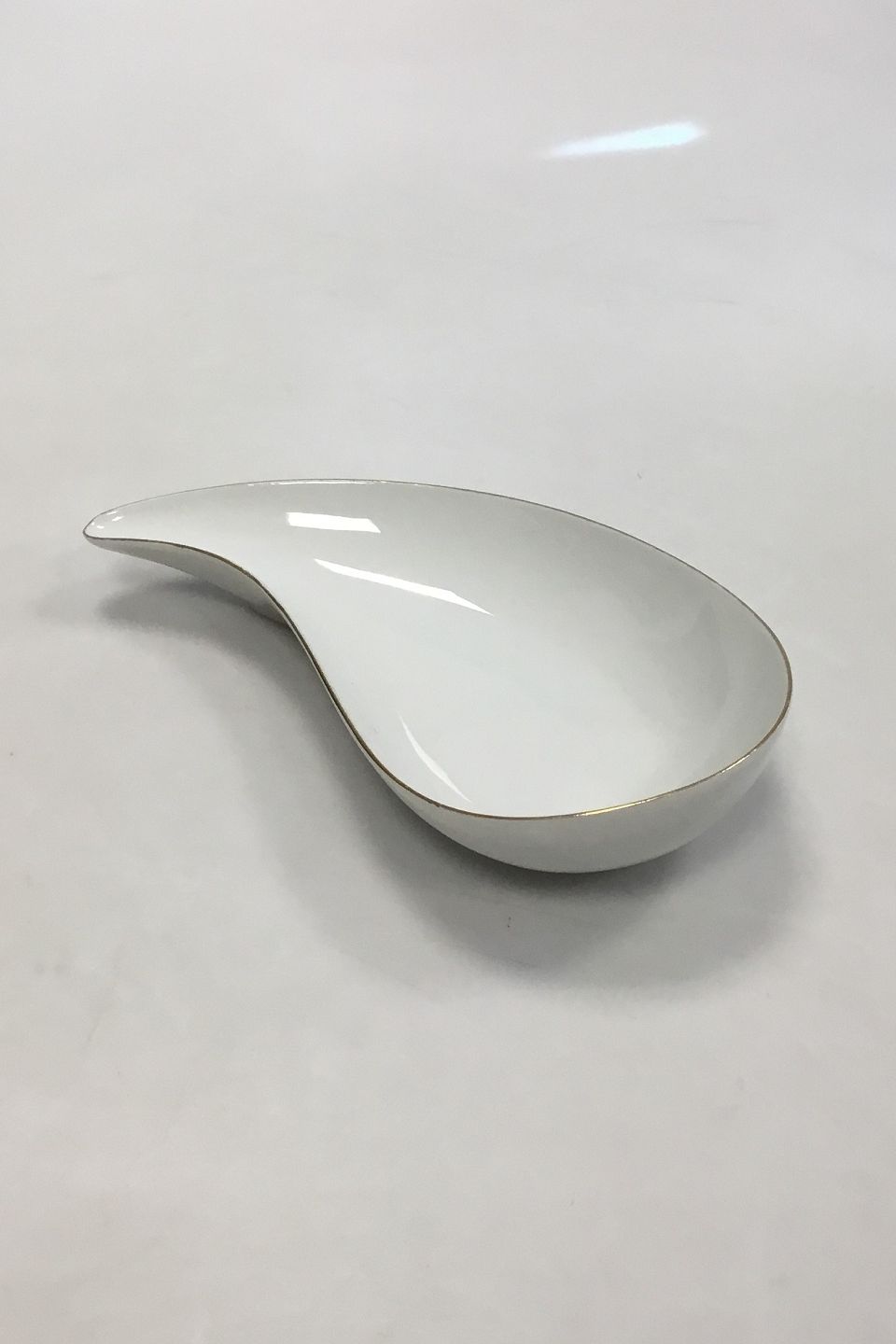 Bing & Grøndahl Hvidt glat stel med guldkant Nyreformet skål No 39. Måler 19 cm(7 31/64 in.)