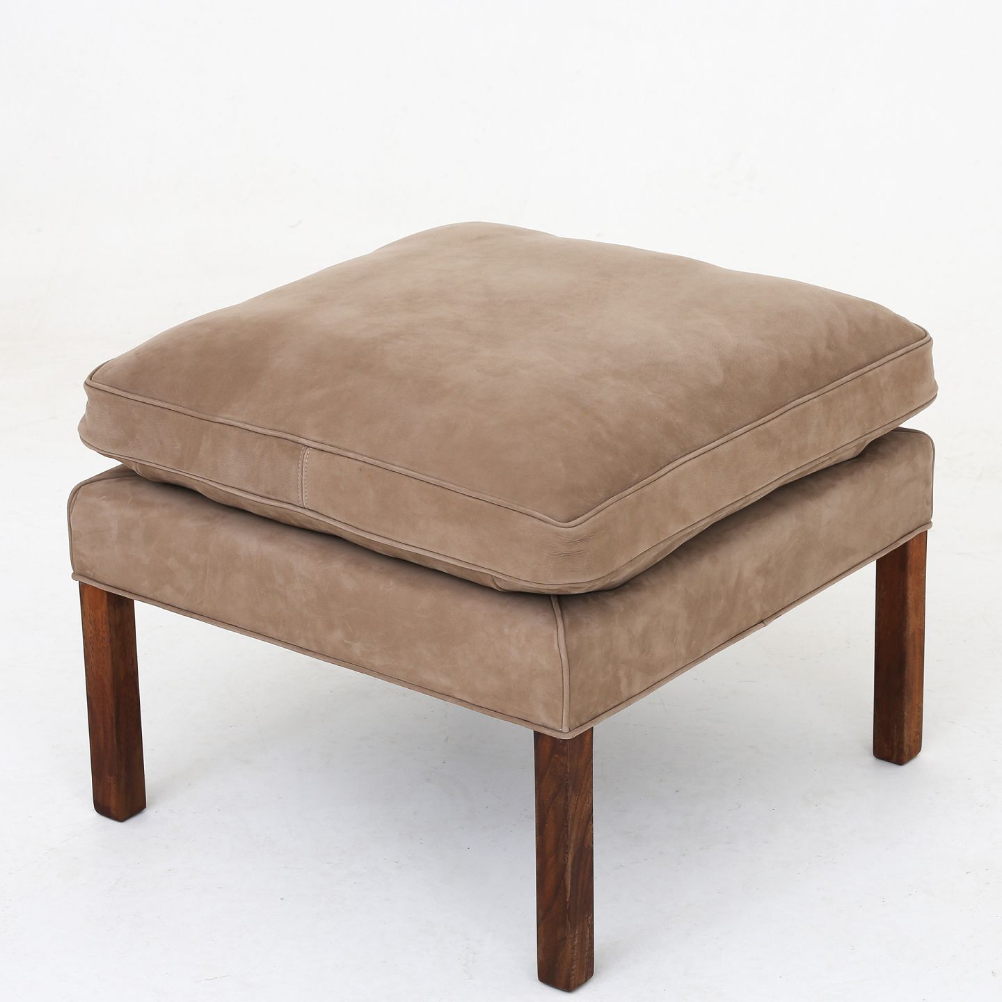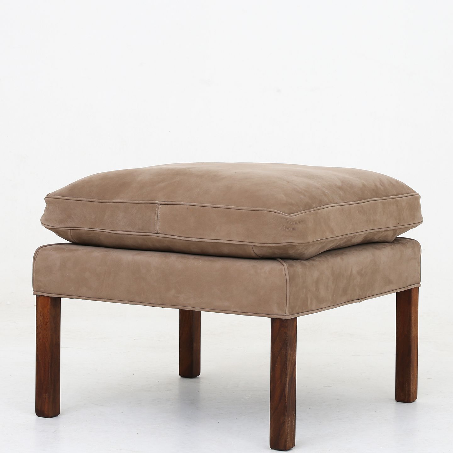 BM 2202 - Reupholstered foot stool in Royal Nubuck aniline leather. KLASSIK offers upholstery of the foot stool with fabric or leather of your choice.