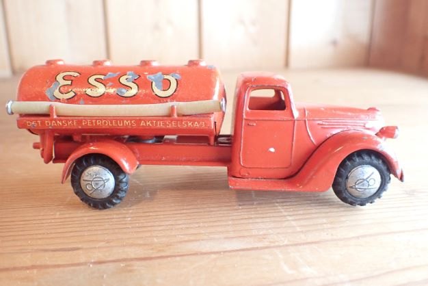 Tekno (Dansk Legetøjs Industri 1928 - 2009) Esso tankbil med slanger på siden. Ca. 1950. Bilen er i pæn, men let slidt stand. Længde:11,7 cm.